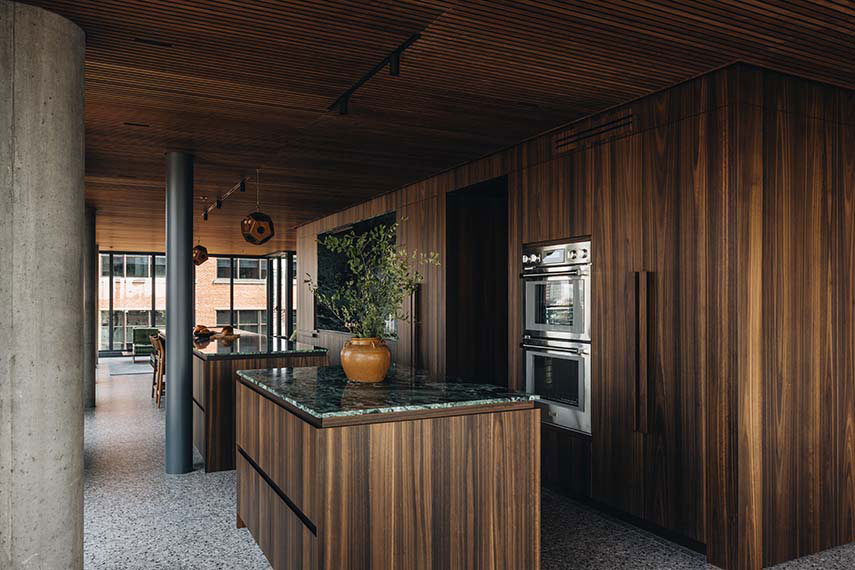 Dan y Jay llaman a MXMA Architecture & Design y a Patrick St-Onge Habitat para dar vida a su nuevo y más grande chalet urbano, cuidadosamente diseñado para reflejar su estilo de vida, donde pueden instalarse cómodamente en sus frecuentes escapadas de Toronto a Montreal. Abierto en tres lados, con una exposición de este a oeste, el apartamento Party of Two ofrece una vista panorámica de 180 grados y una experiencia visual inmersiva y especial