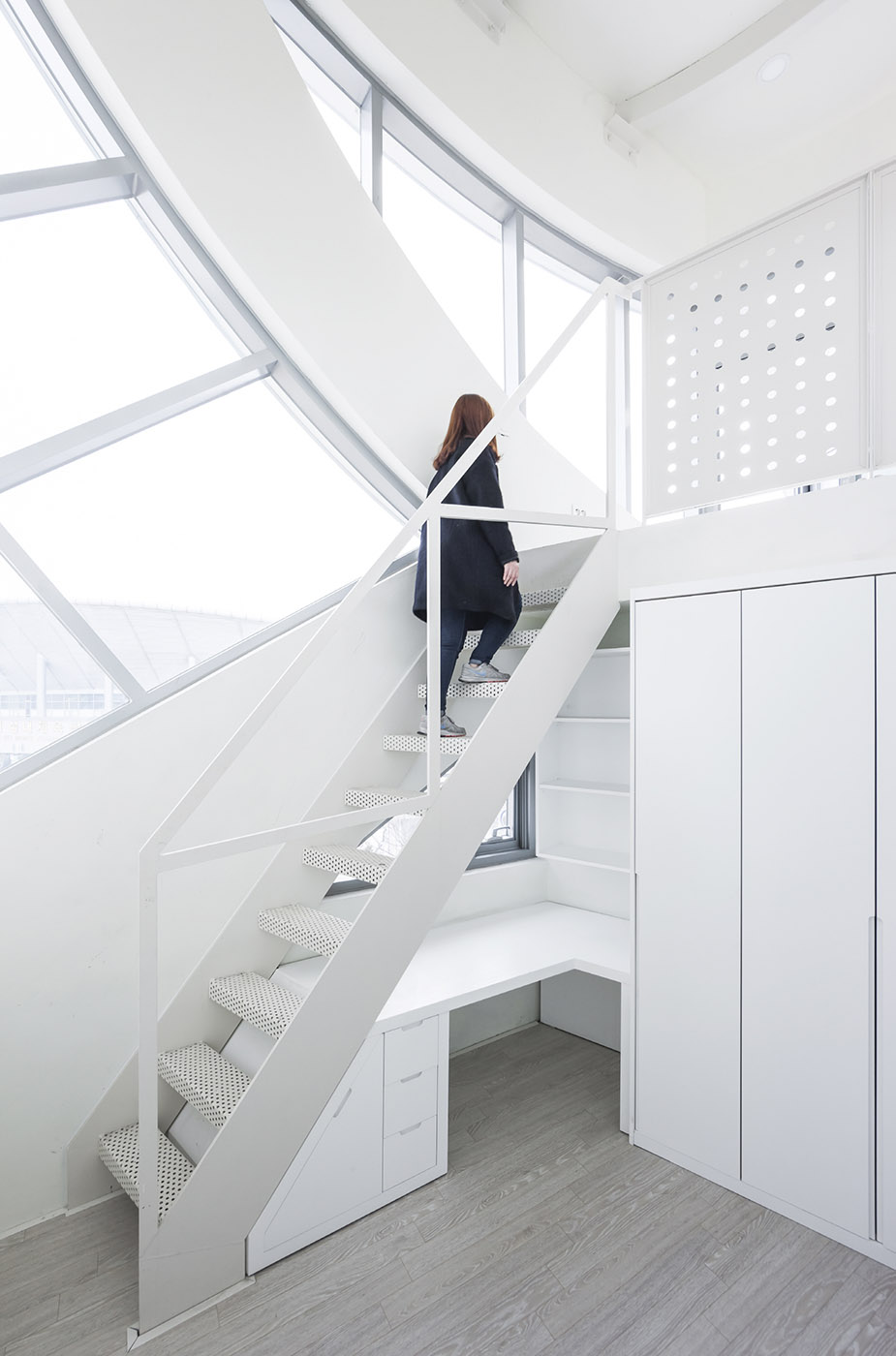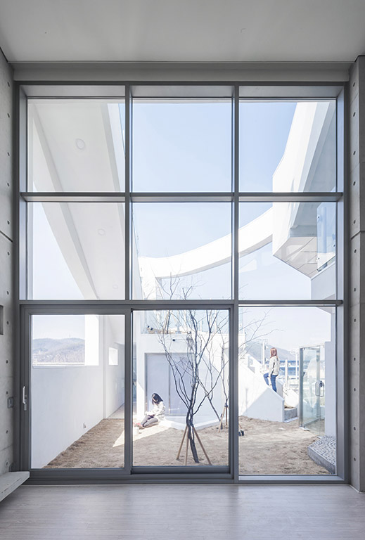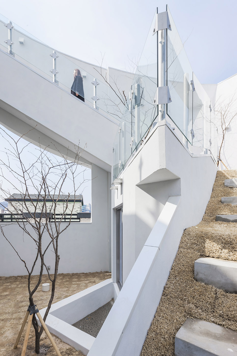 La forma curva utilizada por el proyecto también se deriva de la curva del tradicional techo coreano, además de buscar la armonía con el edificio en las cercanías