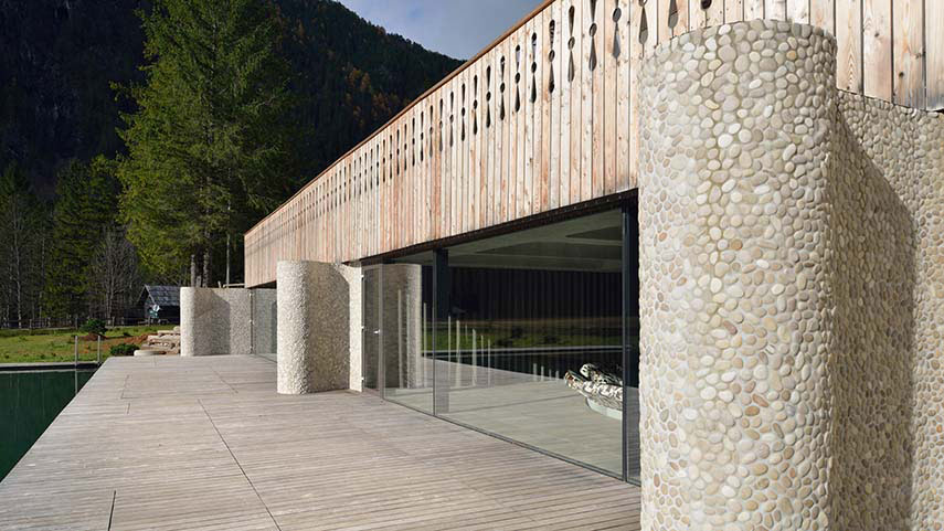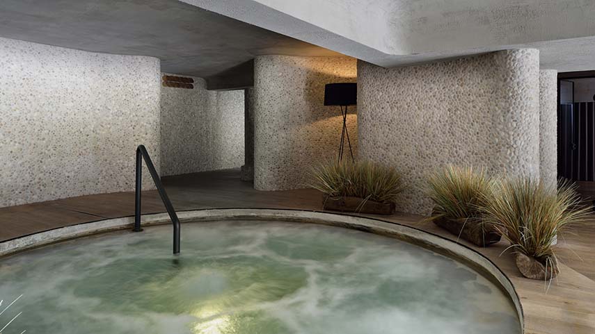 El Hotel Plesnik se asoma a lo que muchos consideran uno de los valles glaciares más hermosos de Europa. El impresionante panorama de esta maravilla natural ha sido motivo para invertir en la renovación del centro de bienestar del hotel. Gran parte del espacio del centro de bienestar existente estaba originalmente ocupado por una pequeña piscina de forma orgánica que se abría a una terraza solarium, justo frente al edificio
