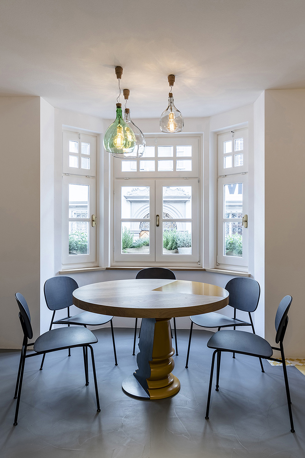 La amplia escalera que conecta los cinco pisos sirve para dar un sentido de unidad a las habitaciones y ha sido interpretada como un estante grande donde se exhiben productos culinarios, libros de cocina, objetos de diseño y curiosidades. En el tercer piso se encuentra la terraza que representa un jardín mediterráneo sobre los tejados de Bolzano y se caracteriza por juegos de agua y una fuente de vidrio que, con un corte en el piso, inunda el piso superior del restaurante con luz