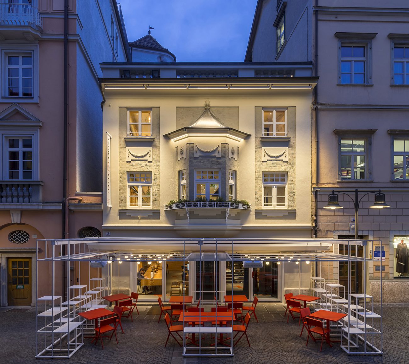 En el corazón de Bolzano, en un edificio histórico, se encuentra el restaurante, el mercado y enoteca, renovado por el estudio de arquitectos Roland Baldi, primera sede de la marca internacional de distribución de vinos y productos gastronómicos italianos de alta calidad