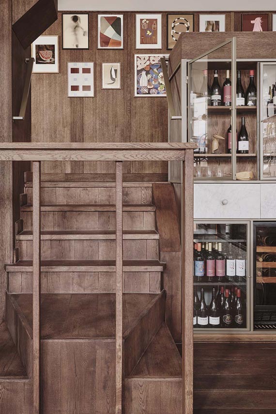Perteneciente a la familia de bares Goudvisch que se extiende por toda la ciudad, el Leo firmado por Studio Modijefsky es el último realizado en la animada zona de Beukenplein. El estilo del bar, en una paleta entre púrpura y gris, se inspira en la arquitectura del edificio que lo alberga. Los revestimientos de nogal y los muebles de roble calientan la atmósfera embellecida con mármoles y detalles en latón
