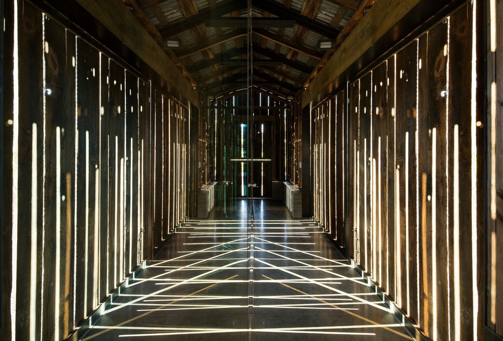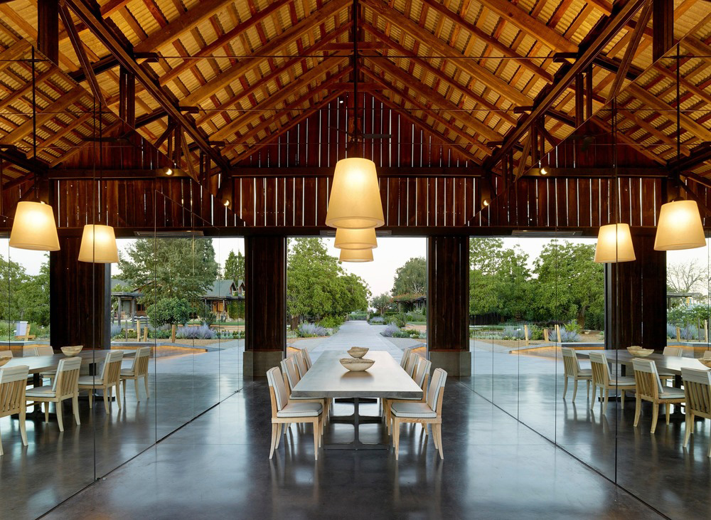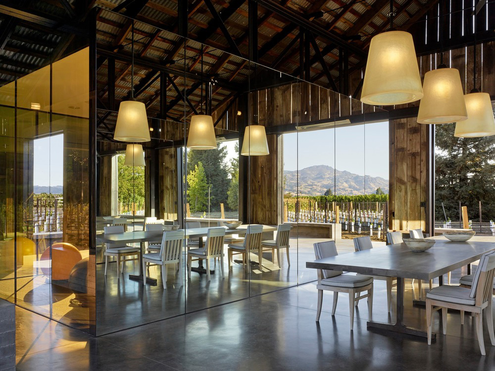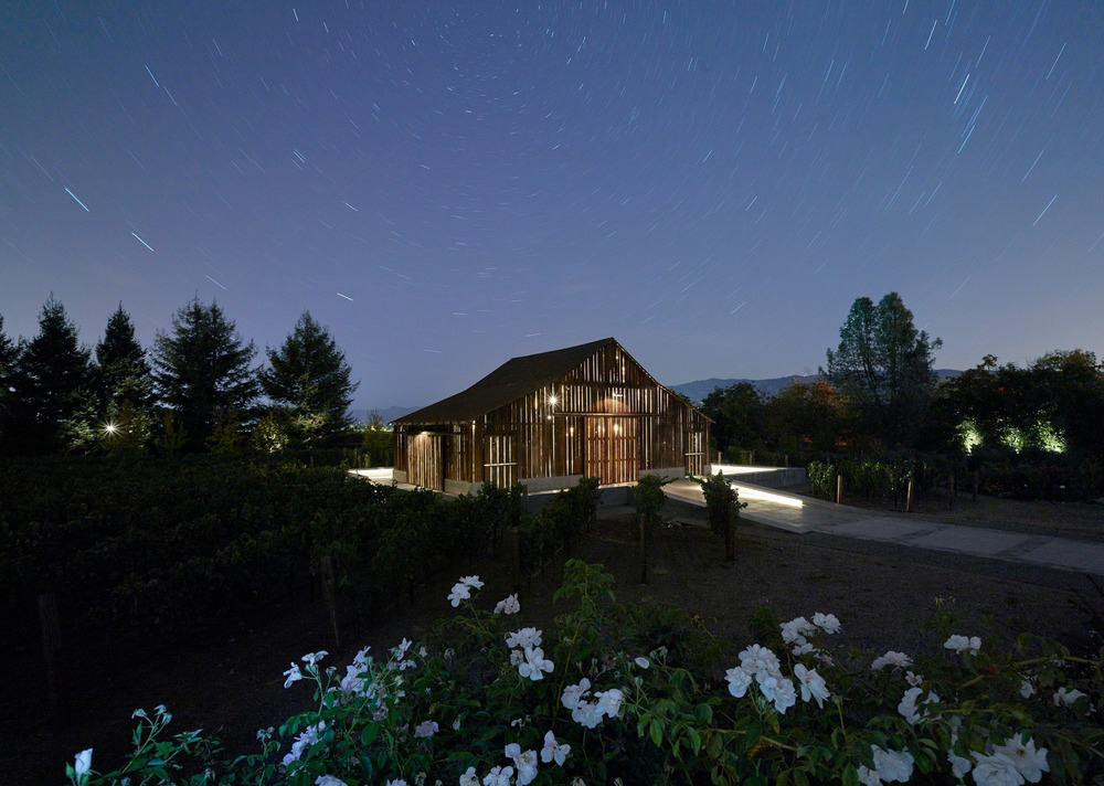 Originalmente ubicado en una propiedad de siete hectáreas en el Napa Valley, el granero se movió sin necesidad de demolición y se ubicó más cerca del viñedo, rodeado, además, de obras de arte. Por tanto, el cliente requiere que el estudio adapte la forma utilitaria de la estructura conservándola y adaptando los interiores al uso contemporáneo