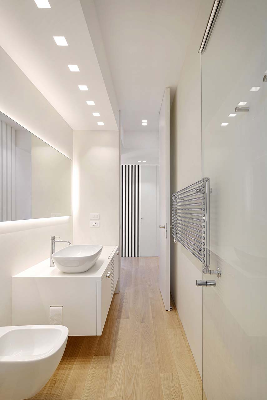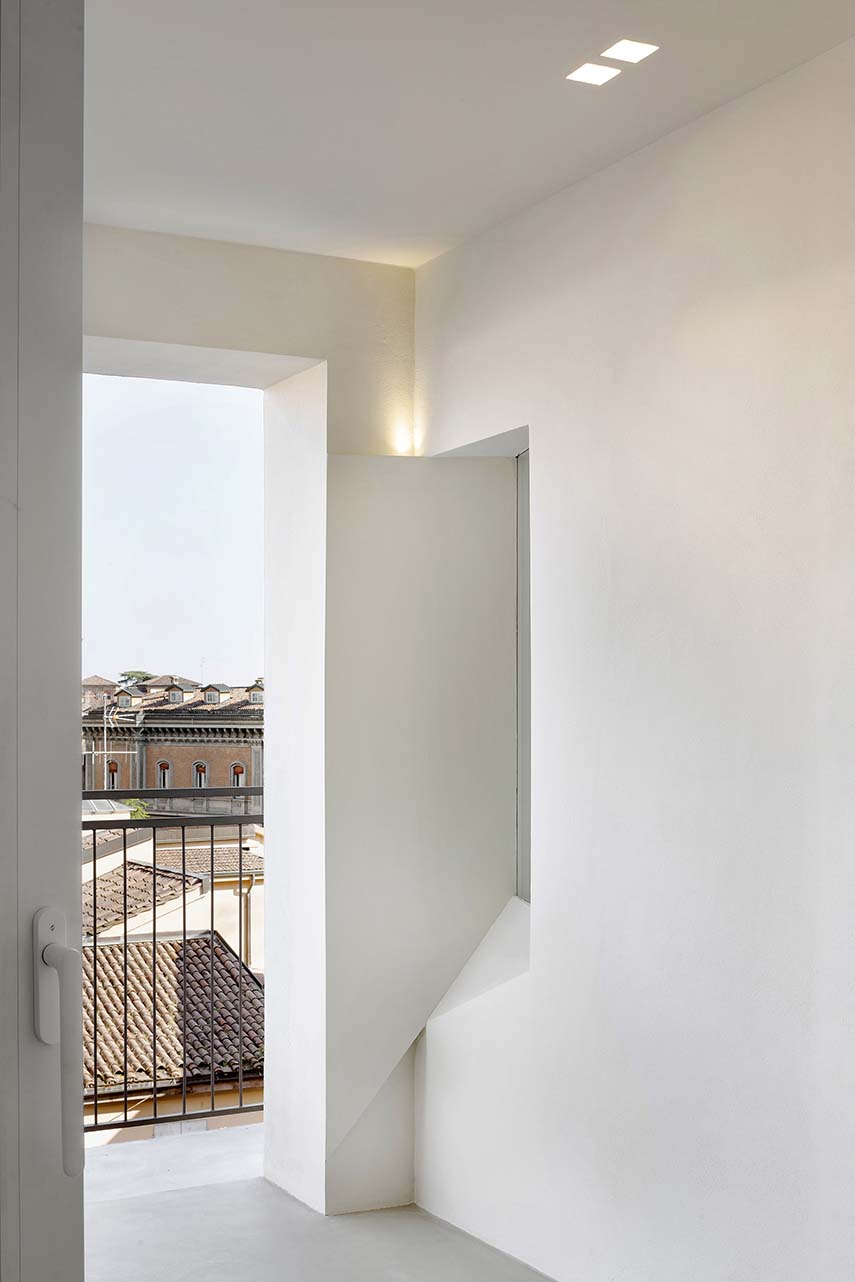 El apartamento de Galleria Cavour es el proyecto más reciente de diseño de interiores del arquitecto Andrea Trebbi. Se encuentra en el 5° piso del complejo residencial y cuenta con maravillosas vistas del centro histórico de Bolonia, como las famosas 2 Torres y la basílica de San Luca. La intervención comienza con la remoción completa de los acabados y particiones preexistentes, lo que permite la creación de un diseño más funcional y una estética adecuada a nuestros días