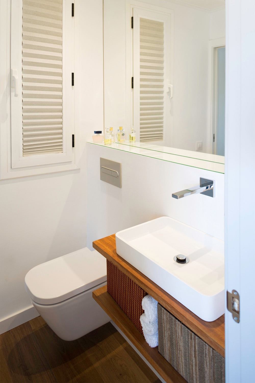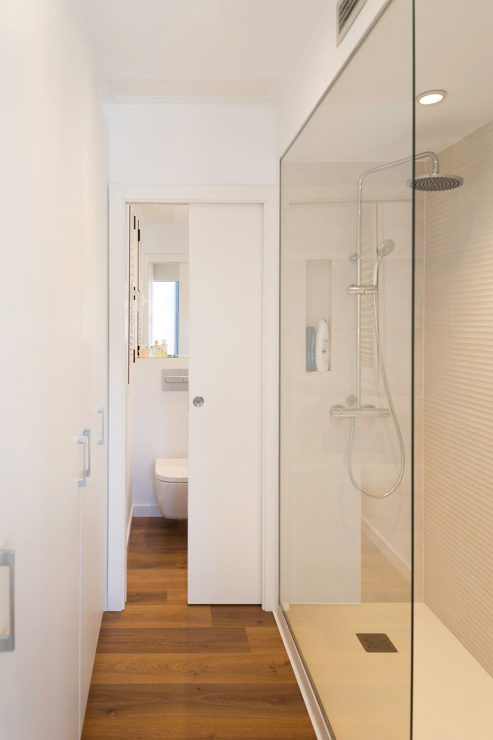 Pequeño apartamento reestructurado en Barcelona. El baño entre sociabilidad e intimidad.