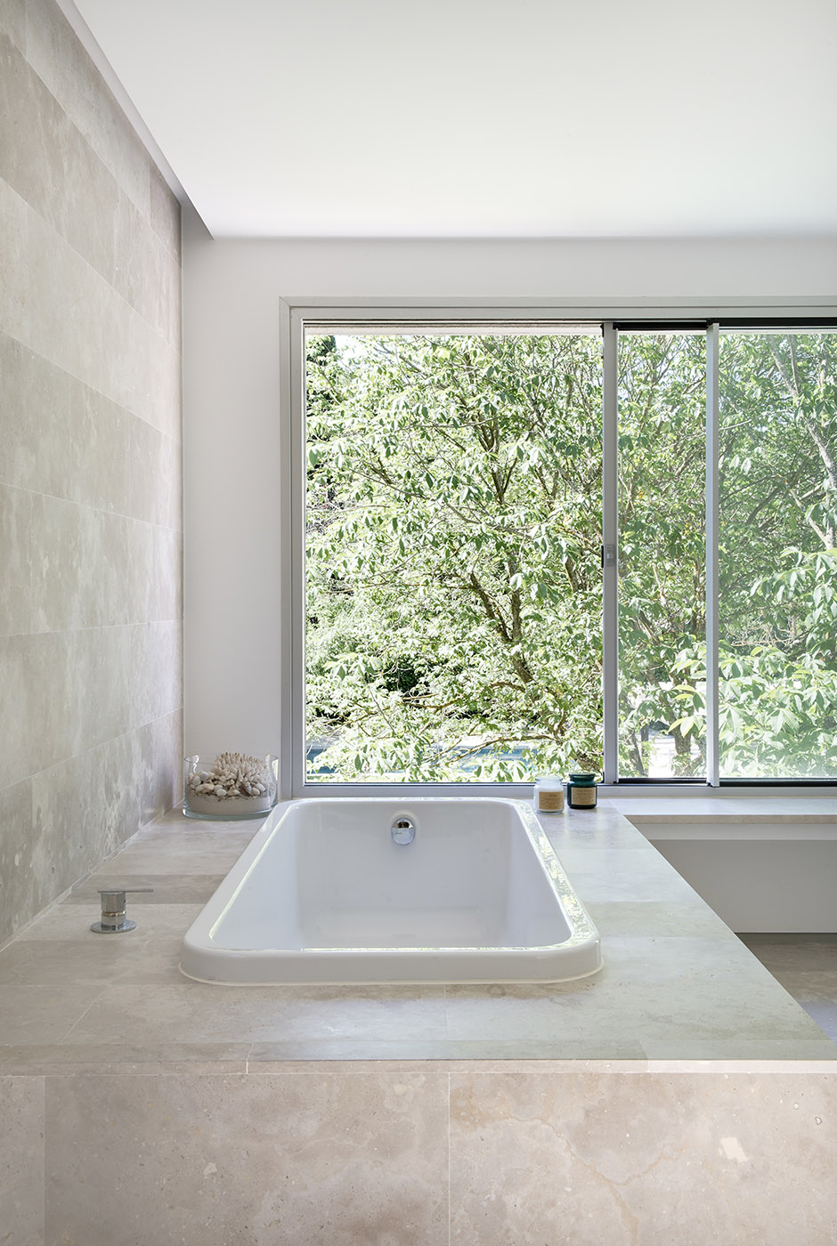 La elección recayó en una casa construida en los años 60 con un magnífico jardín, pero con una envolvente muy compacta y sólida. Los diseñadores luego pensaron en perforar la casa de manera que diera la idea, no tanto de que la casa se asome al jardín, sino más bien de que el jardín penetre en el interior de la casa. Por lo tanto, se crearon vacíos en la arquitectura para percibir que la vegetación pudiera entrar en la casa.