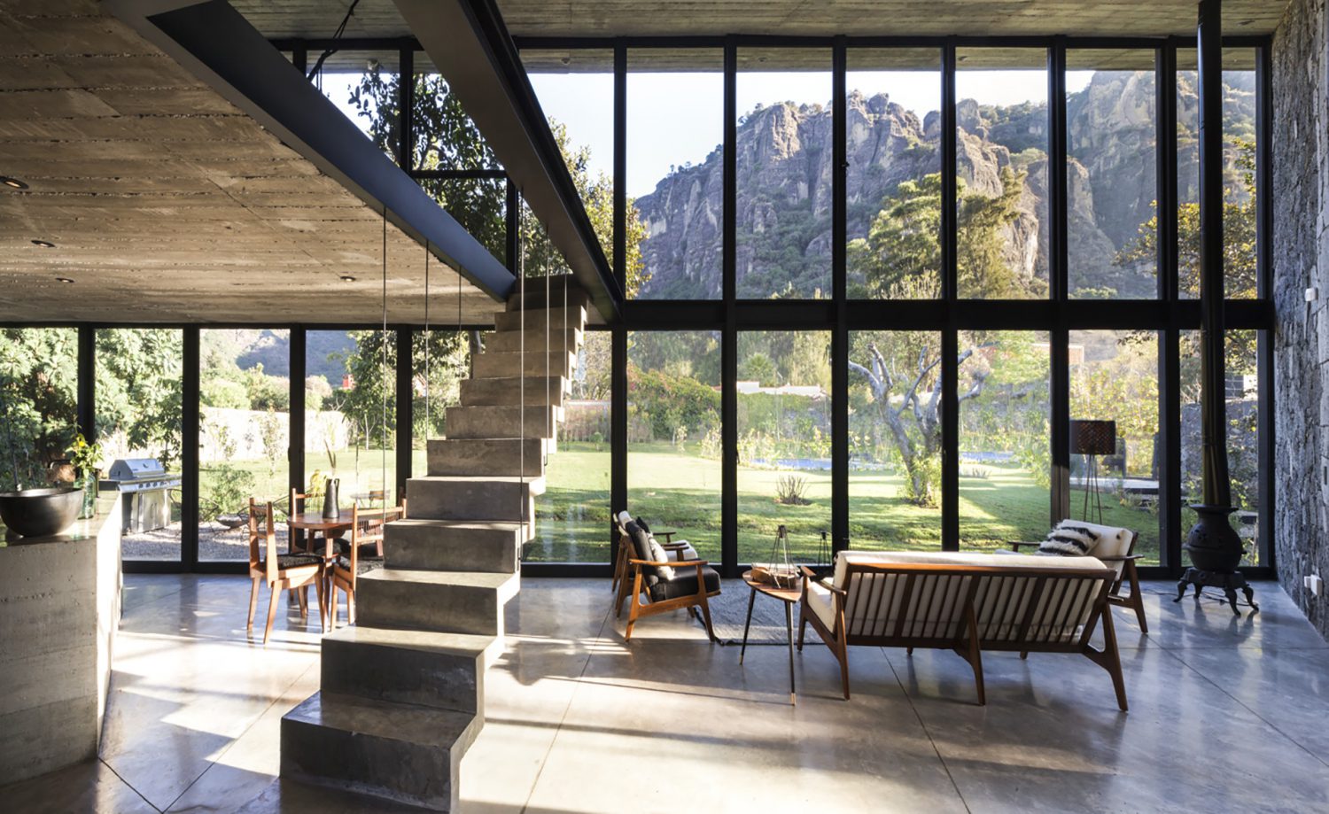 Ubicada en las montañas rocosas en las afueras de Tepoztlán, esta arquitectura, diseñada por el estudio Cadaval & Solà-Morales, reinterpreta la dureza de la piedra, haciendo que el espacio sea cómodo, gracias a la compenetración de la naturaleza.