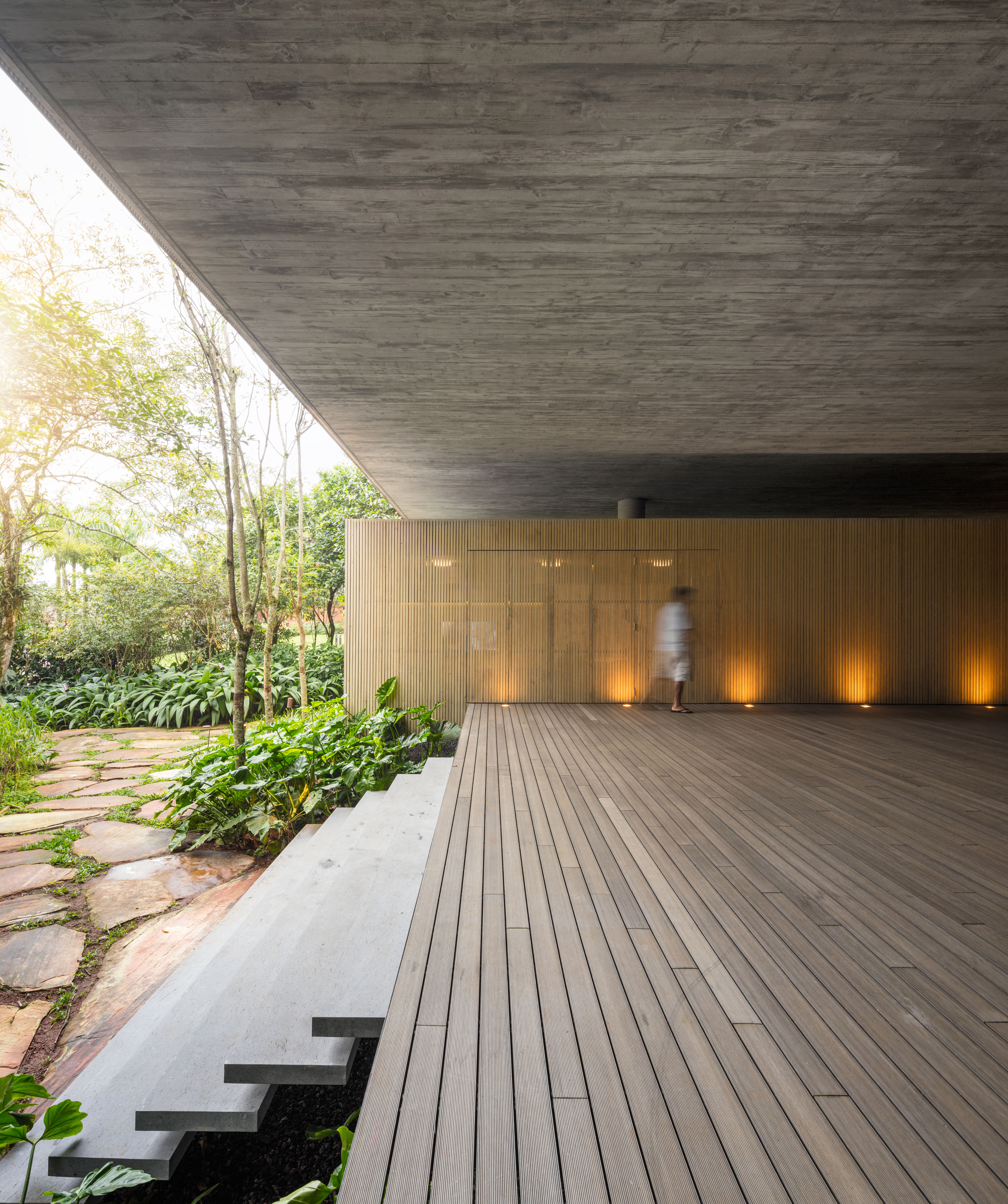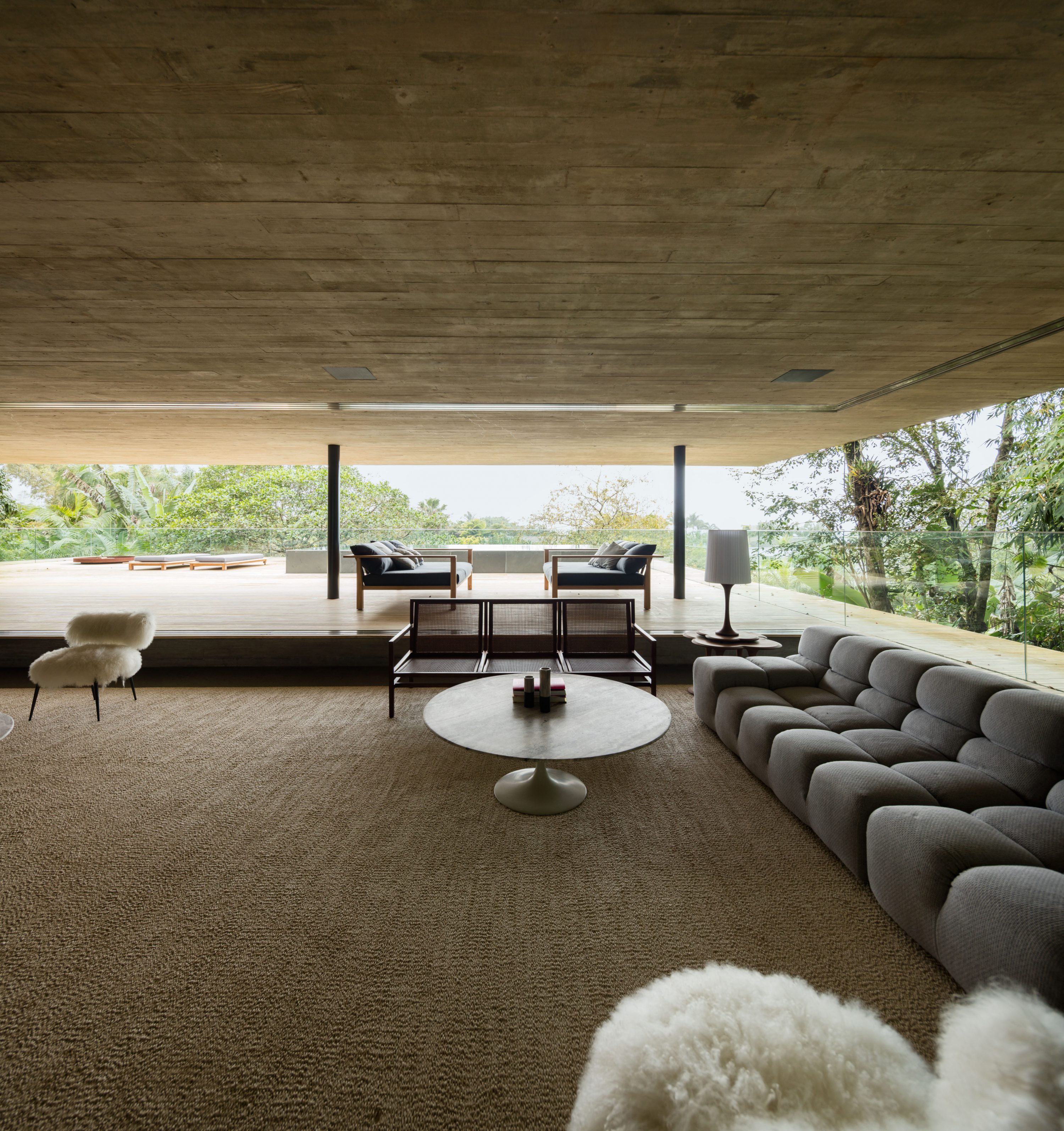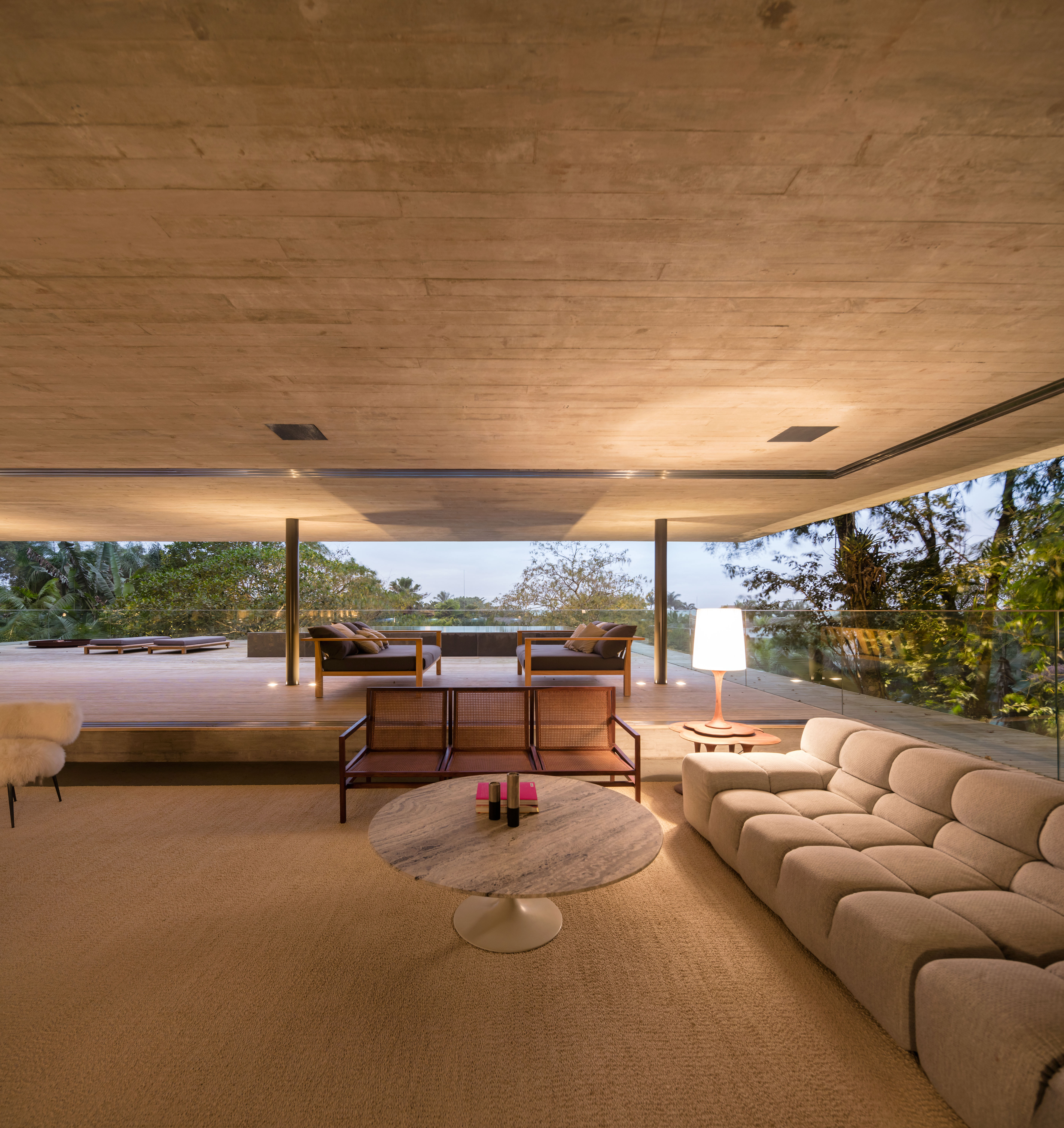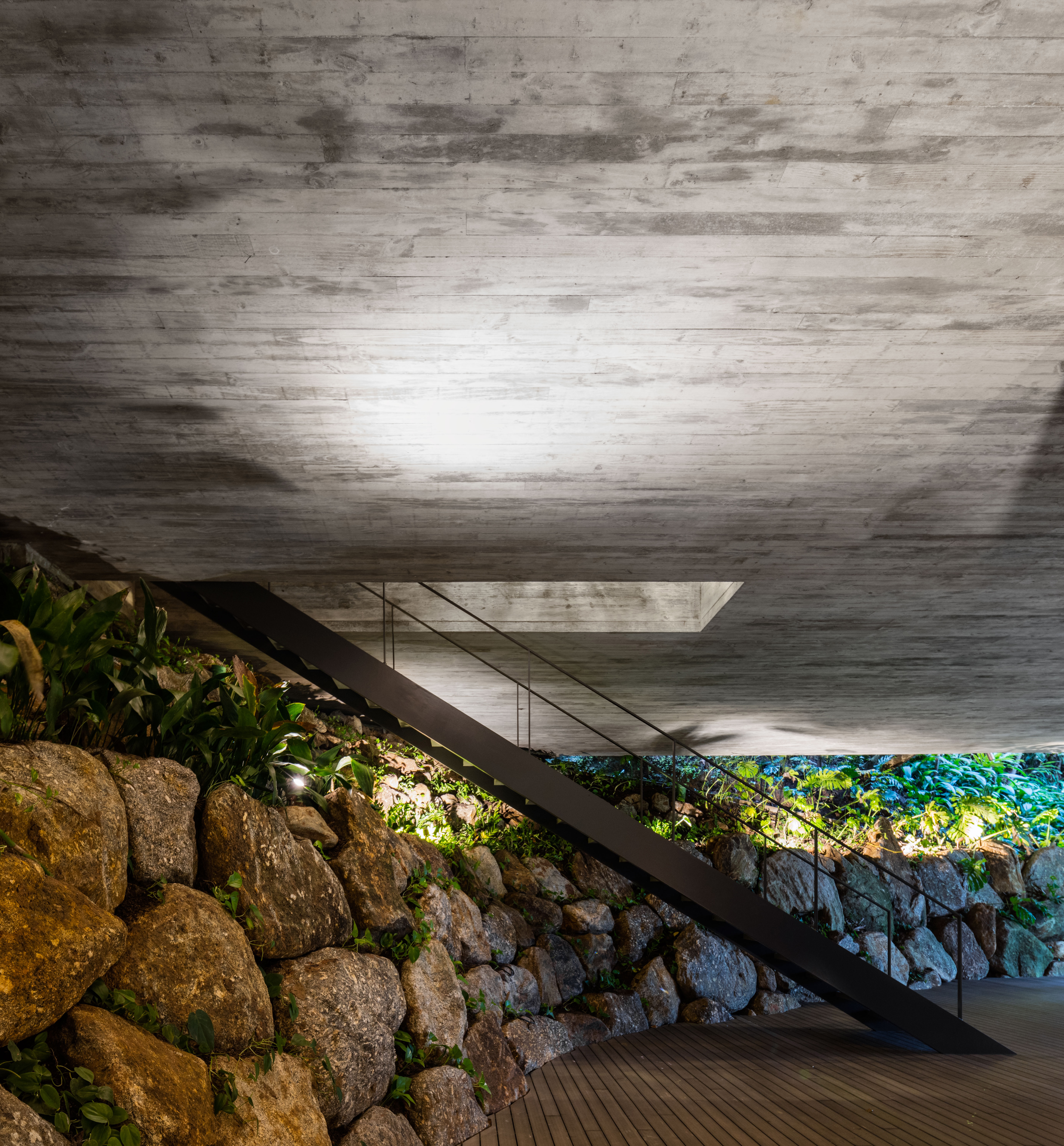 Ubicada en la selva tropical, el proyecto de Studiomk27 quería insertar la casa en un perfil montañoso, con el objetivo de crear una conexión entre la arquitectura y la naturaleza, favoreciendo la vista hacia el océano y la incidencia de la luz solar