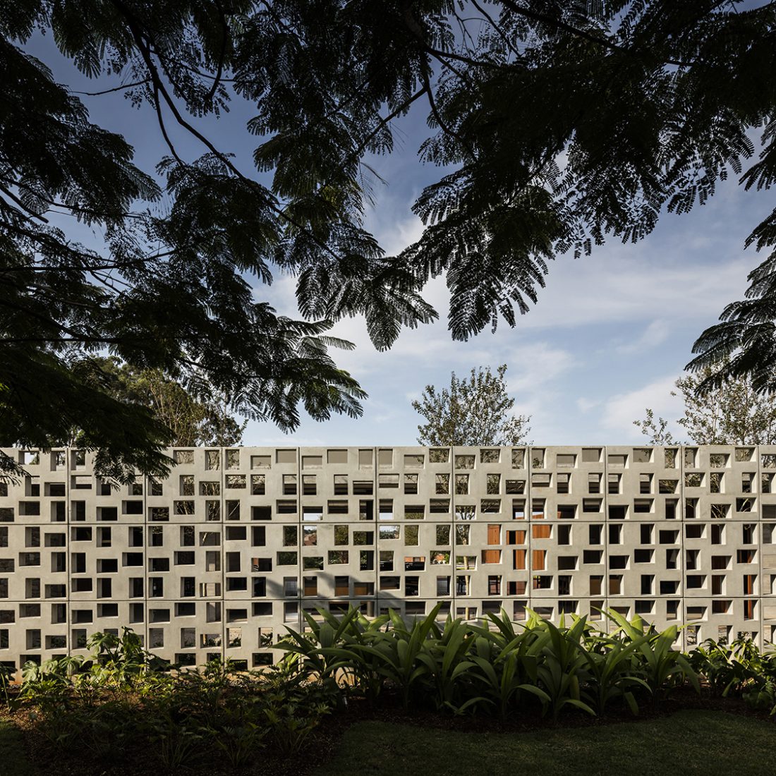 El uso de concreto armado, material considerado demasiado moderno y frío, redime aquí su potencial, convirtiéndose en un elemento de conexión con la naturaleza.