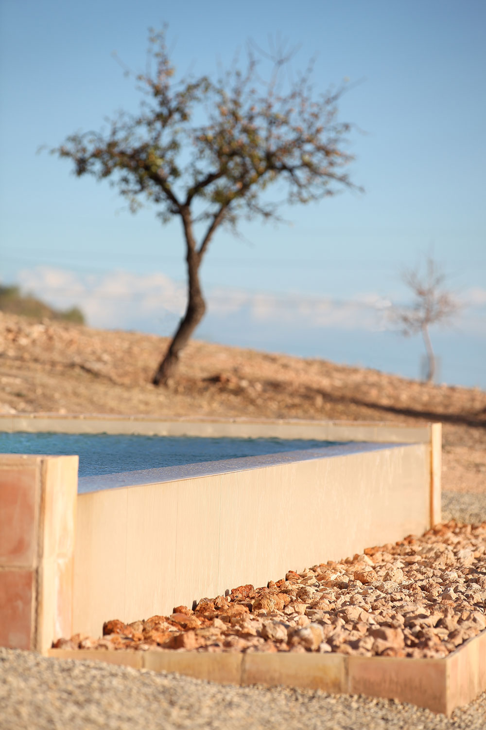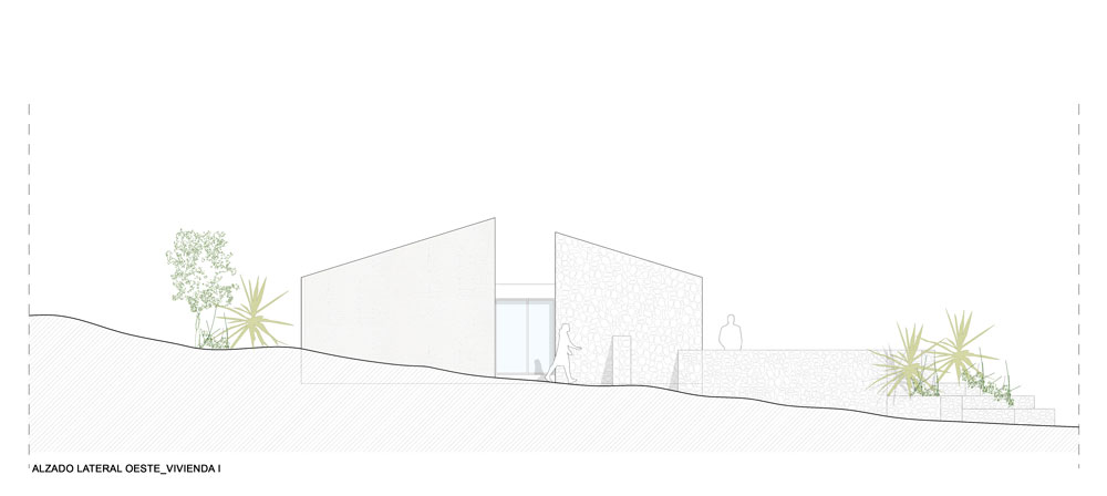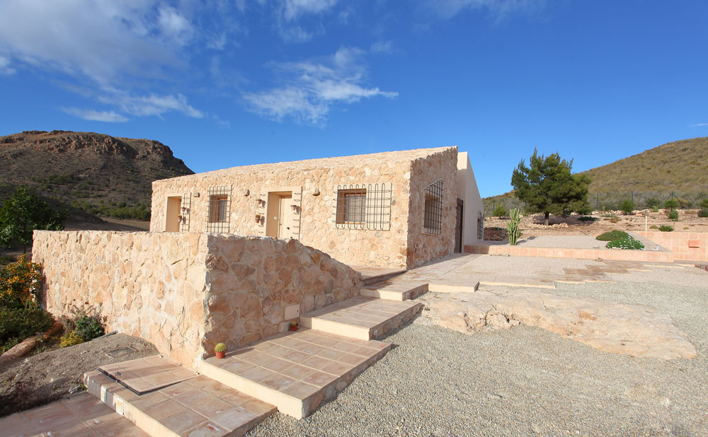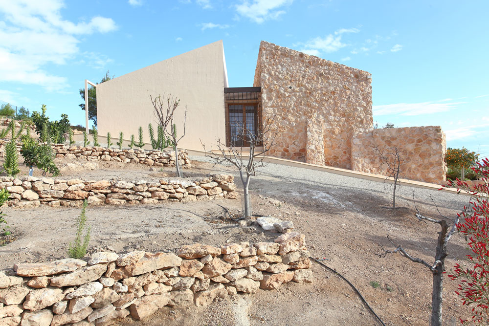 En la provincia de Murcia se intenta recuperar la esencia de una casa mediterránea de Levante, ubicada entre campos y piedras, sin desvirtuar el paisaje en el que se encuentra. Para la parte rehabilitada se recupera la piedra de la excavación de la ampliación, mientras que para la parte ampliada se utiliza arcilla recuperada de la zona