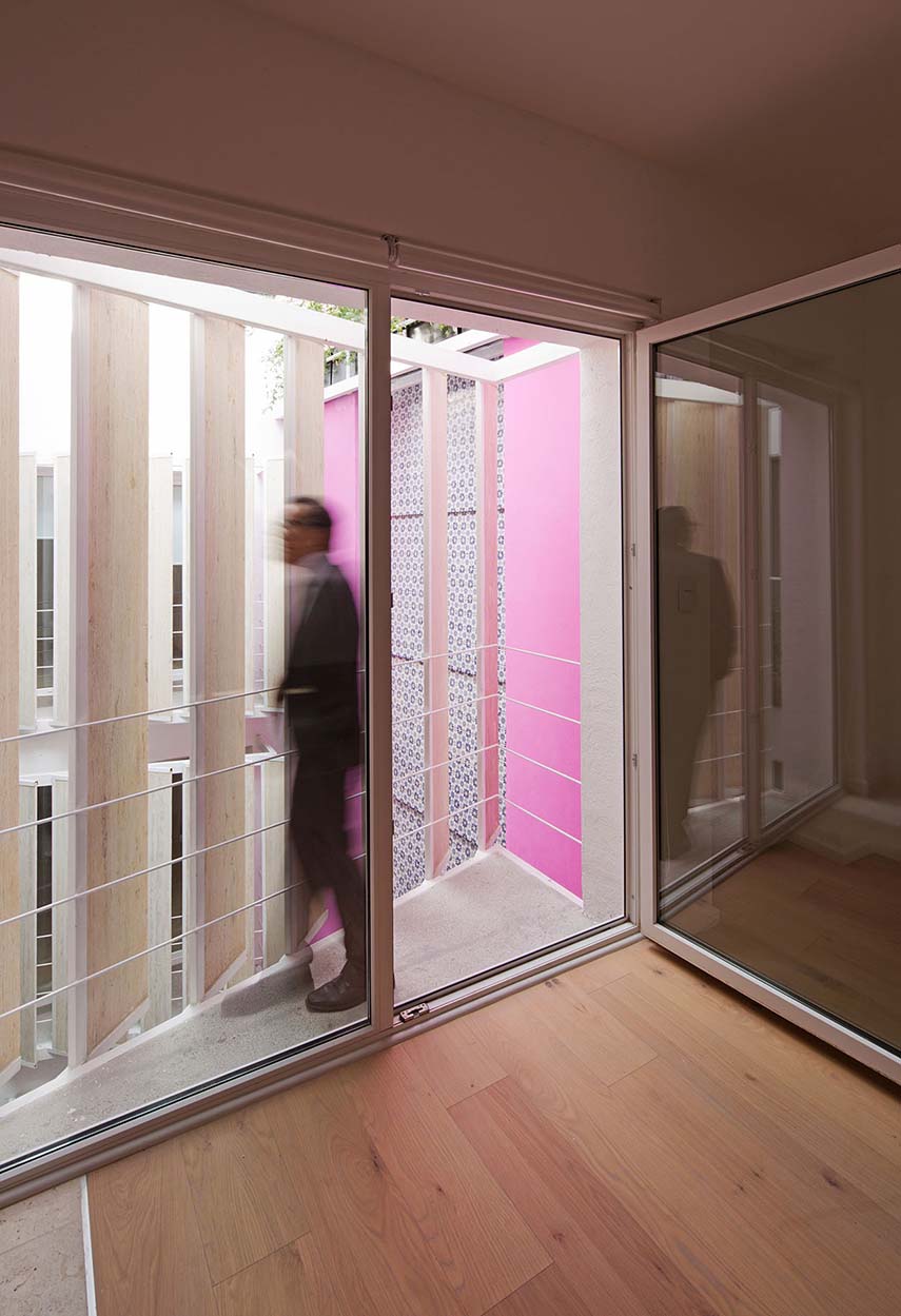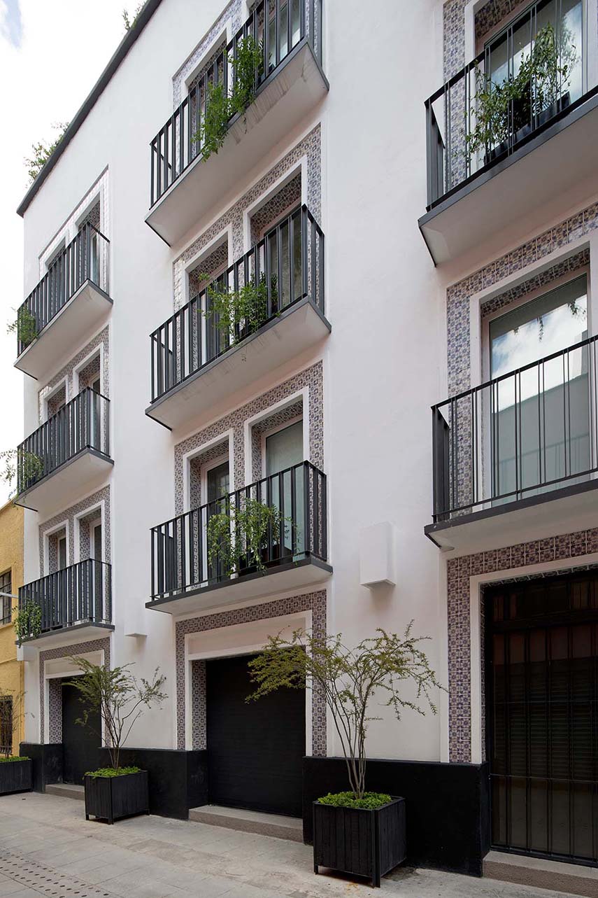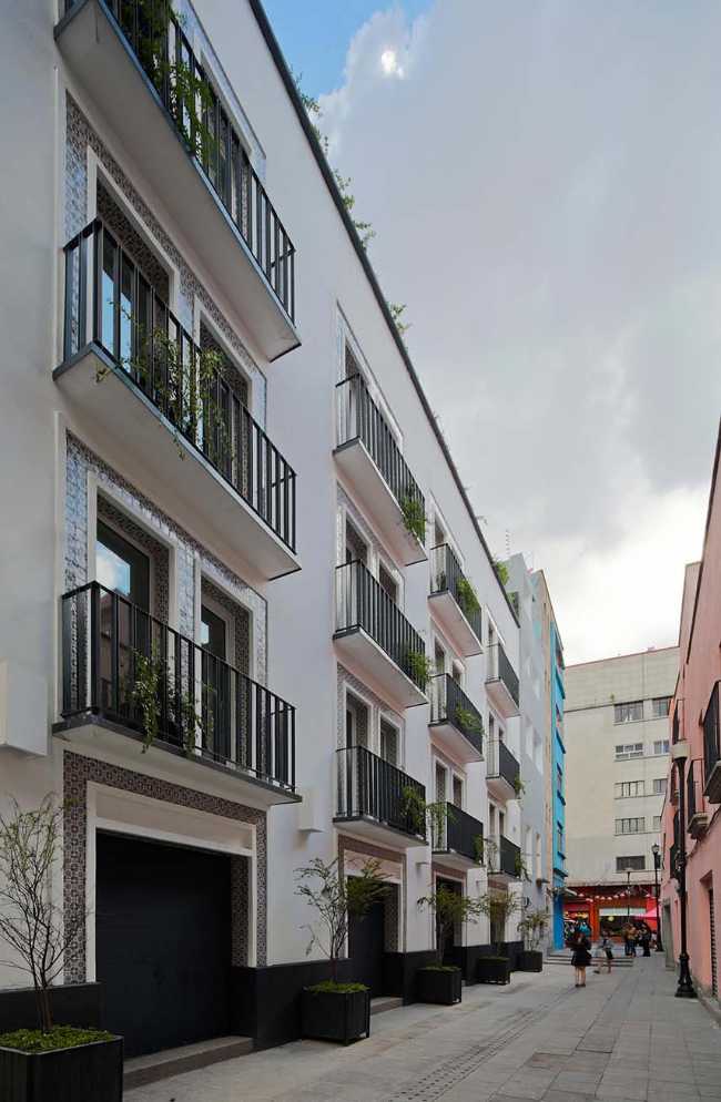 En el corazón de la Chinatown de la Ciudad de México, el proyecto CD8, diseñado por Boué Arquitectos, se integra con elegancia en el tejido urbano. Hacia la calle se presenta con balcones de hierro forjado, vegetación y detalles que dialogan con las fachadas cercanas, manteniendo ritmo y proporciones. A primera vista, el edificio no promete nada extraordinario, y es precisamente aquí donde se revela la inteligencia del proyecto: transformar lo poco llamativo en valor arquitectónico, actuando por sustracción.