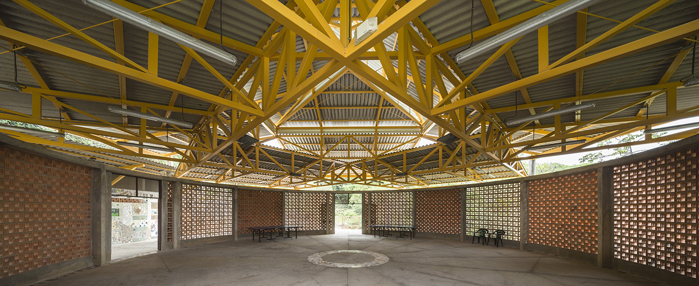 La realización del centro también fue posible gracias a la donación de algunos materiales. En el proyecto subyace la idea de un diseño bioclimático, con materiales locales capaces de expresar un sentido de lugar, comunidad e innovación sensorial, tanto visual como espacial y material