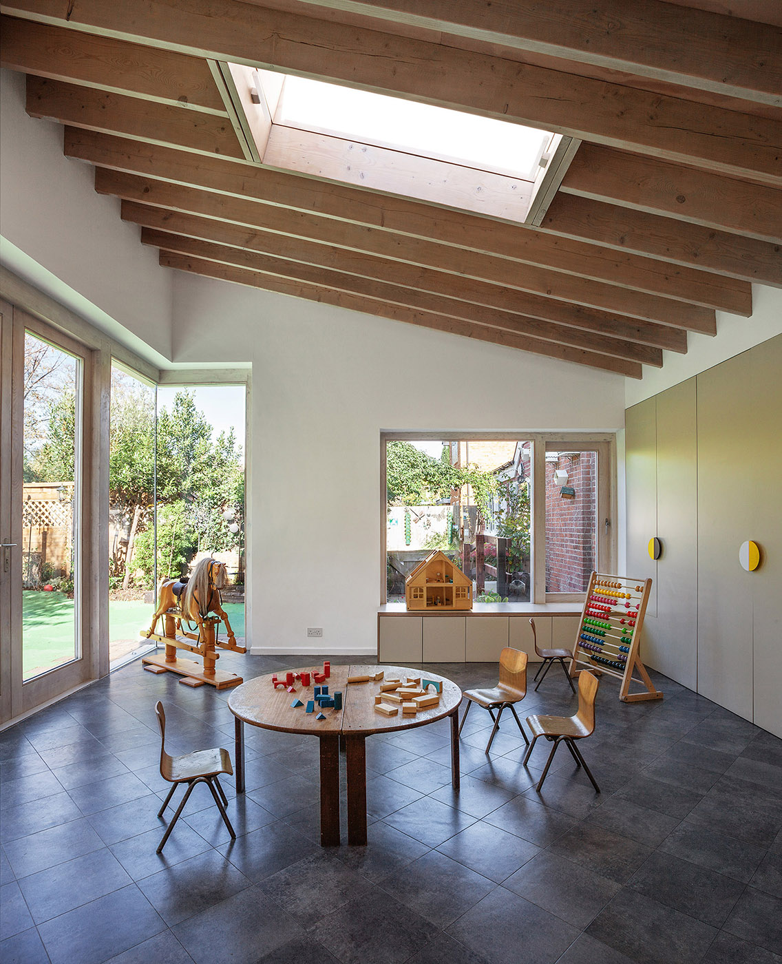 Villa victoriana con jardín de infantes en la planta baja. La ampliación mejora la calidad de los espacios