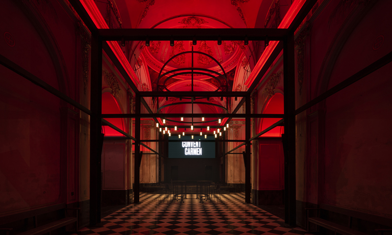 El proyecto de renovación comienza con la iglesia desacralizada, que se convierte en un espacio polivalente, acceso principal y paso. El espacio renacentista, sobre el que el arquitecto trabaja de forma minimalista, se convierte en un espacio donde florecen las actividades sociales