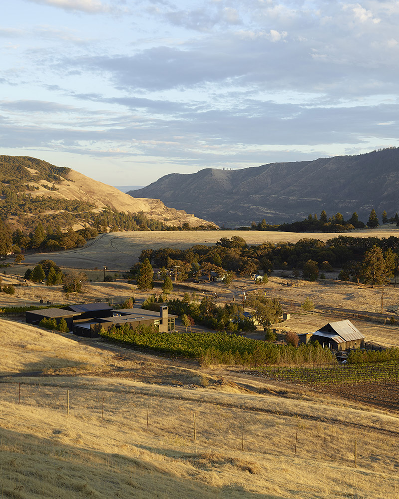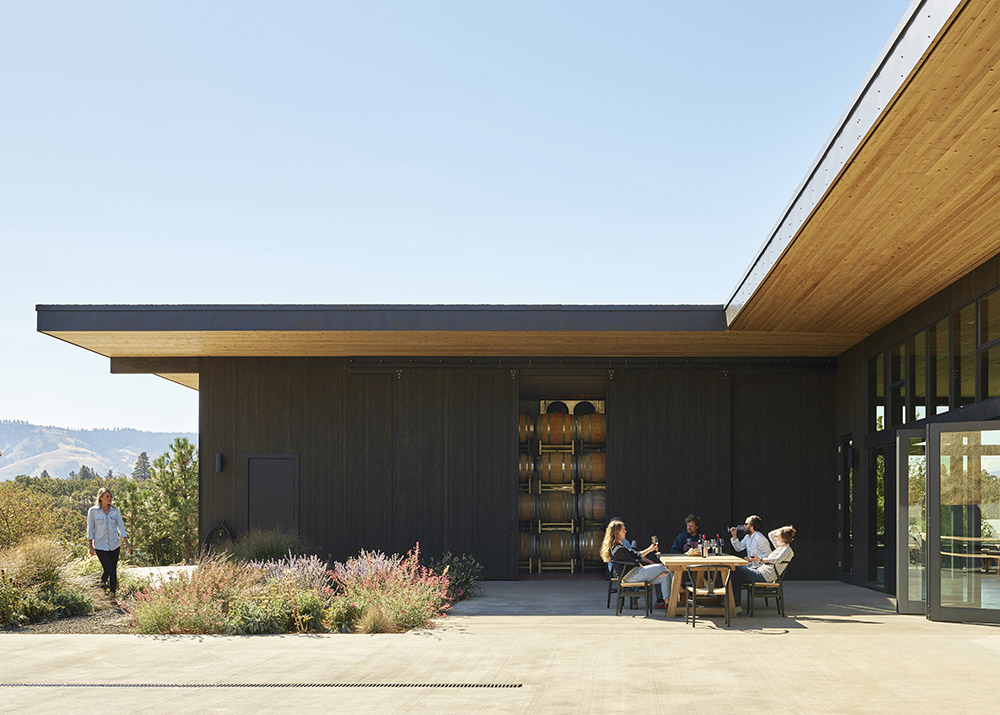 COR Cellars diseñado por goCstudio se encuentra en una parcela de 5200 pies cuadrados, expuesta a vientos constantes del oeste. De ahí la idea de crear un patio central que pudiera considerarse el corazón palpitante del proyecto: en parte para organizar los espacios y en parte para proteger a los trabajadores y visitantes de las condiciones ambientales típicas.