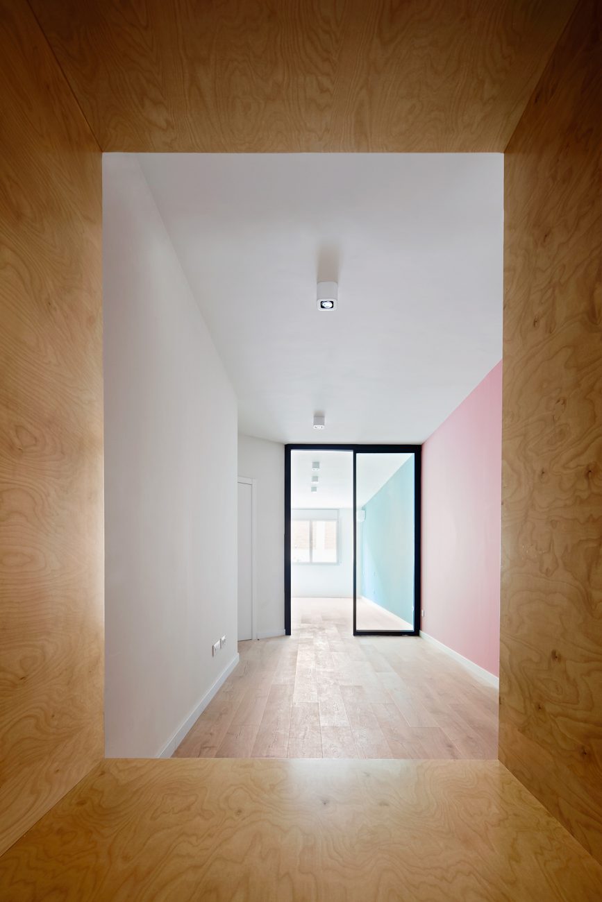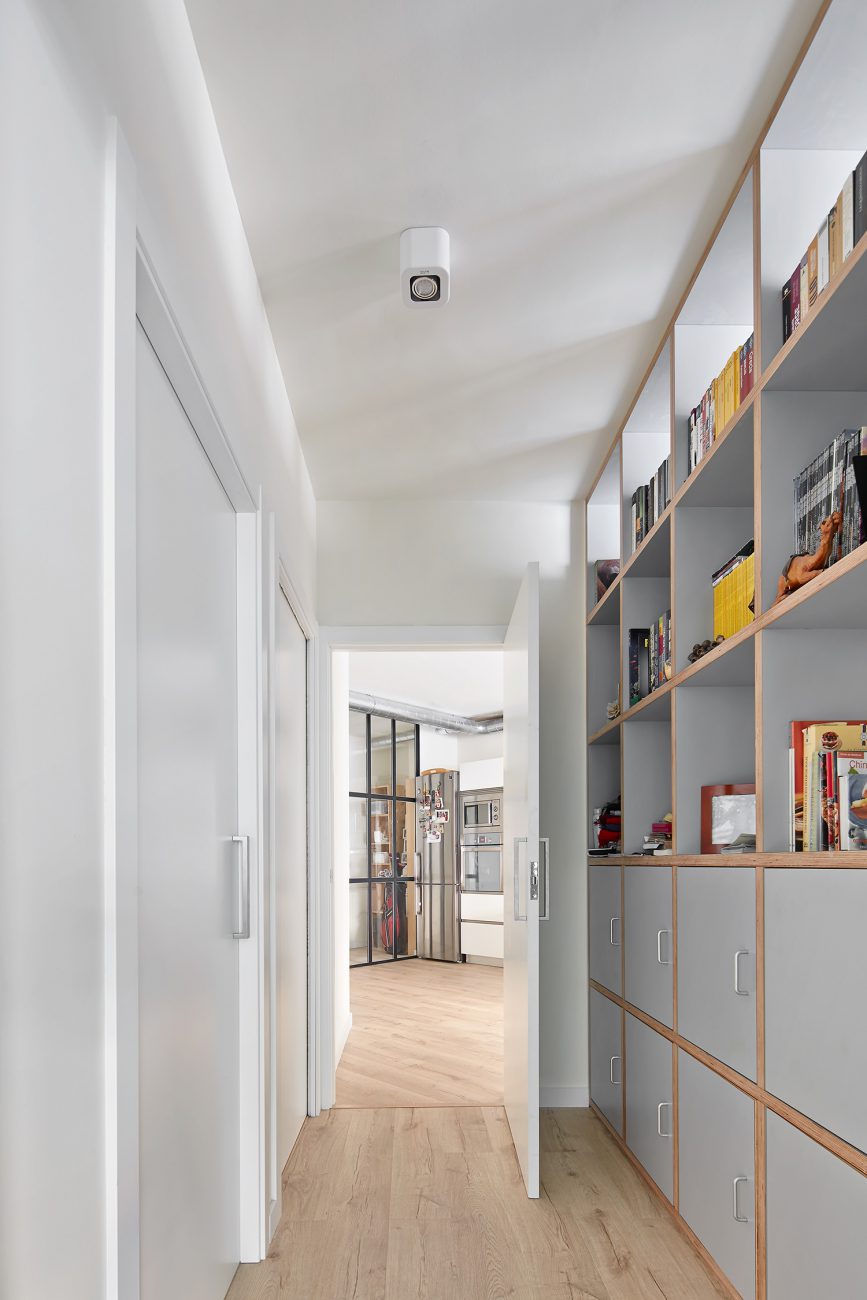 En Barcelona, el arquitecto Raúl Sánchez renueva las instalaciones de una oficina adaptándolas para uso residencial. Grandes espacios luminosos para vivir la casa diseñada de forma abierta pero que goza de un nivel de privacidad gracias al juego espacial geométrico