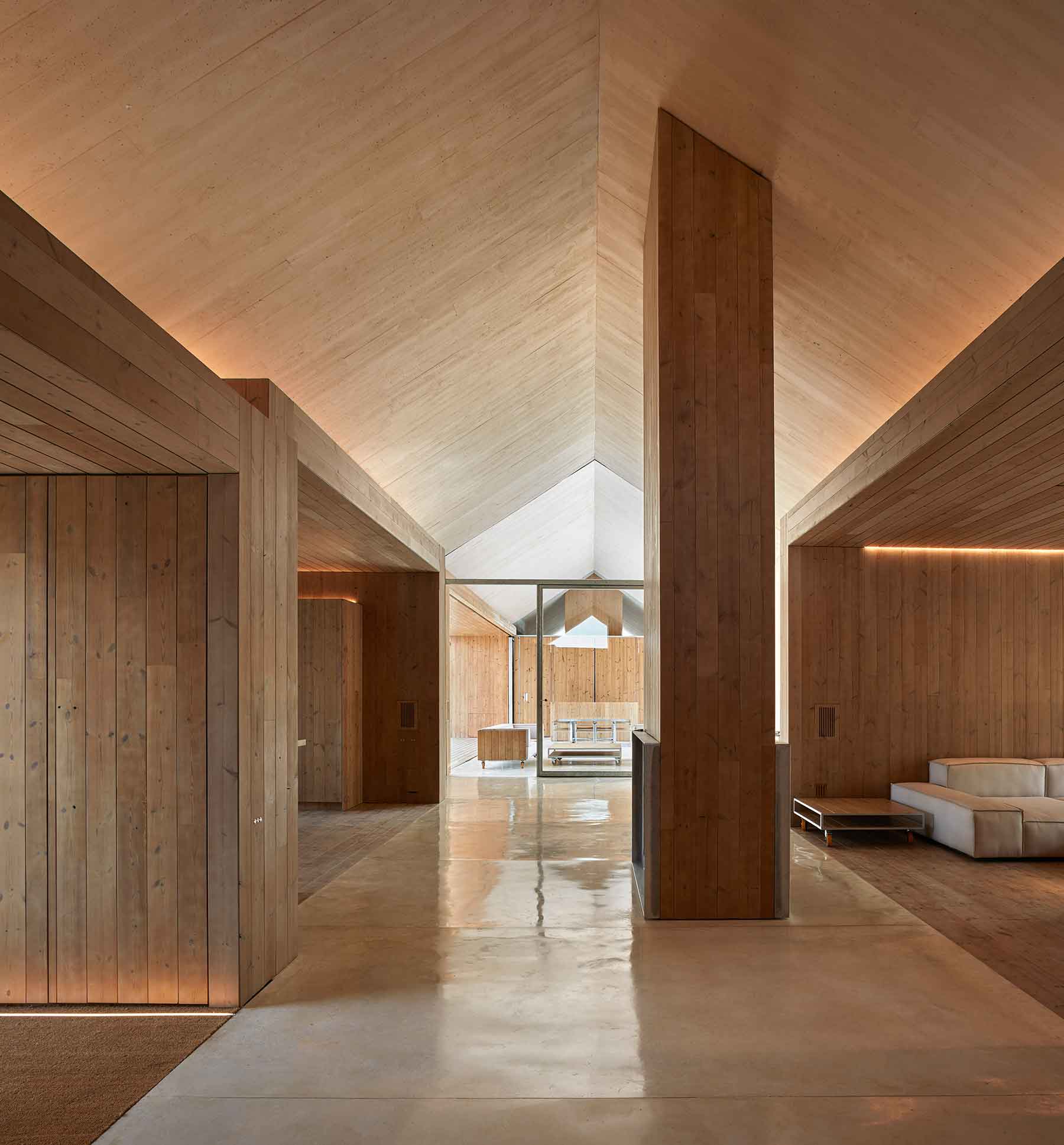 Las vistas desde el interior se enmarcan por las superficies de pino
