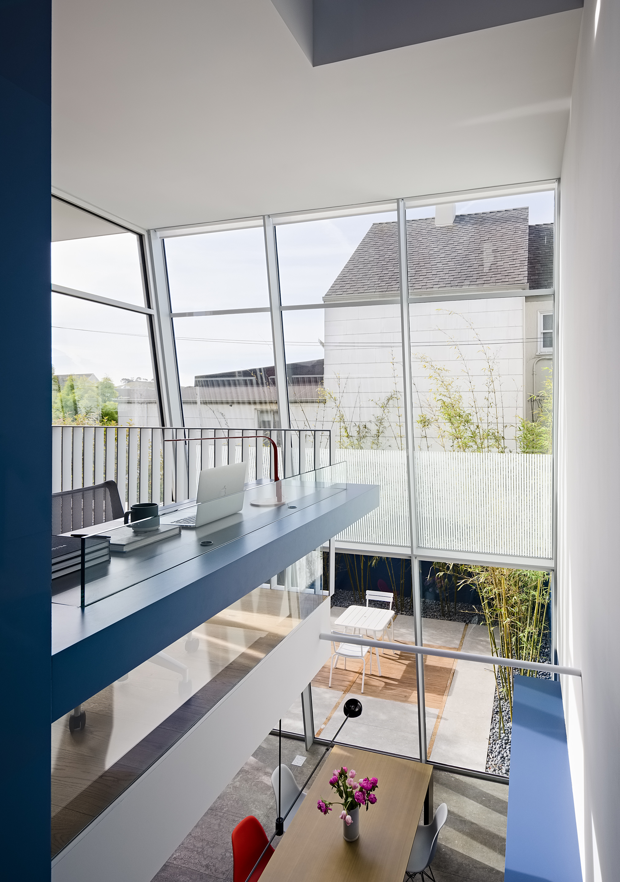 Peri massimizzare gli spazi della casa, il piano terra è stato scavato nella parte posteriore, né risulta una facciata inclinata di 9 gradi, costruita con un telaio in acciaio smaltato sul con vetro isolante. L'angolo su due piani e la facciata inclinata, ottimizzano lo spazio e la metratura della casa. In questo modo, l’antica casa vittoriana viene reinventata, pur mantenendo la sua facciata originaria