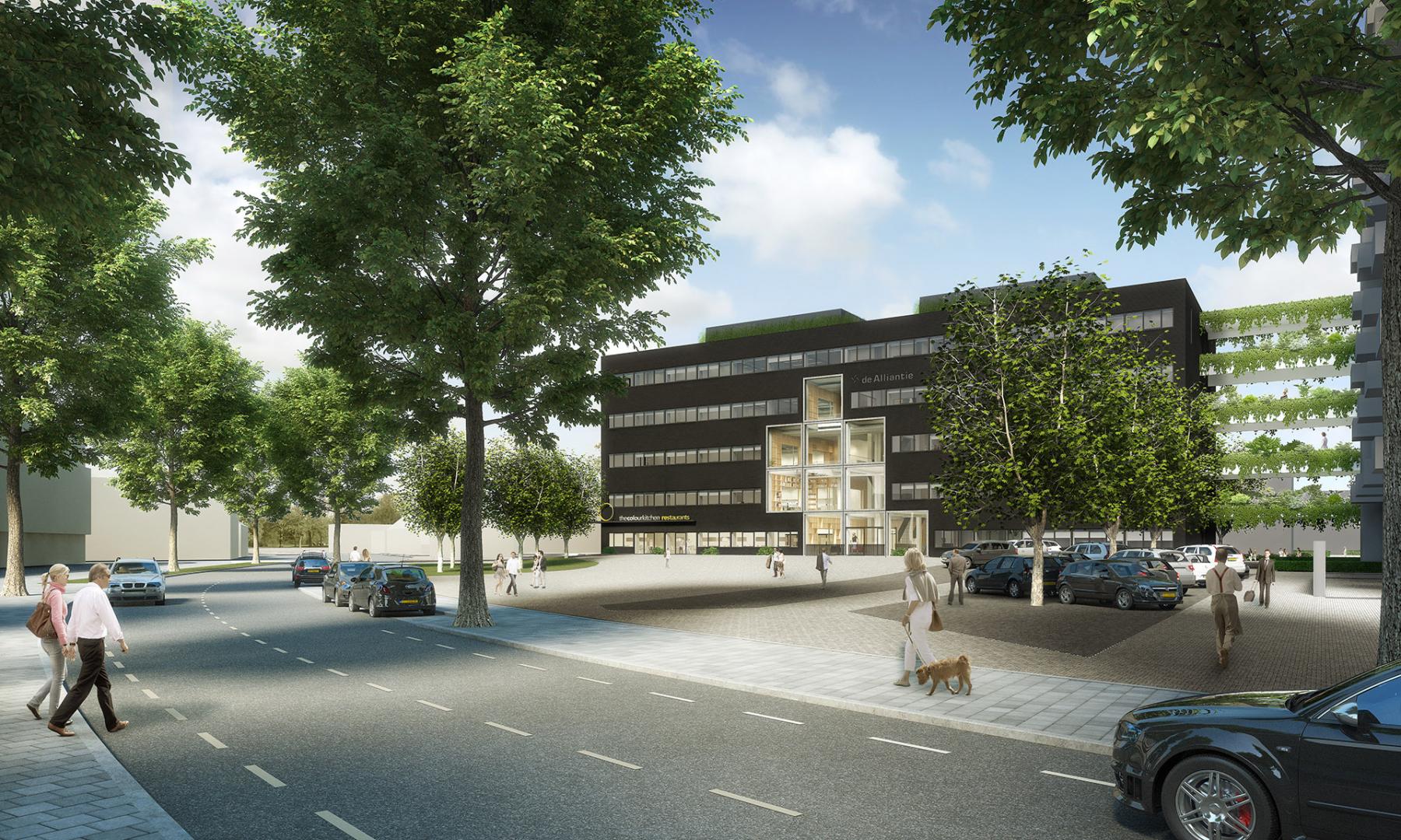 L’Azienda De Alliantie aveva bisogno di una nuova sede per riunire gli uffici regionali a diventare più efficiente. Essendo in buone condizioni l'edificio per uffici di quattro piani è stato mantenuto. Situato all'angolo del sito, l’edificio aveva bisogno di un volto pubblico di fronte al centro commerciale e della città. I piani degli uffici ricevono luce sufficiente sul perimetro. Inoltre, De Alliantie voleva che il disegno esprimesse la nuova identità dell'ufficio