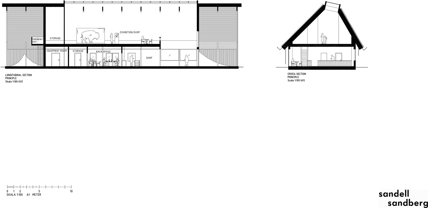 La visión del estudio de arquitectura sueco Sandellsandberg, encargado del proyecto, era dotar a la reserva natural de edificios modernos, pero con un diseño general que recordara la arquitectura tradicional de la zona. Inspirado en las casas históricas y construido según la tradición artesanal de Blekinge, el edificio de madera de la entrada tiene forma de granero, con grandes ventanales y tejado de paja