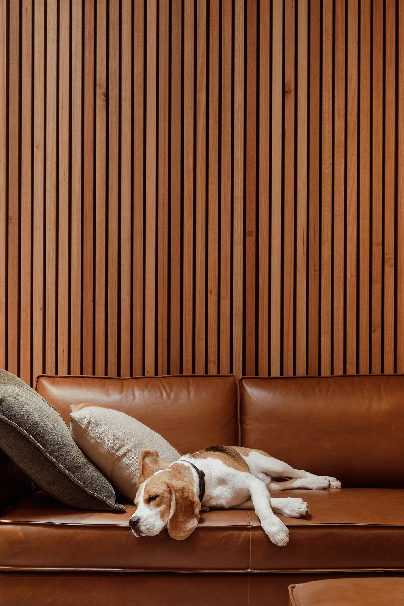 El exterior de la oficina es de ladrillo, por lo que protege al edificio en su animado entorno urbano. Sin embargo, al entrar la persona queda inmediatamente envuelta por la calidez de la madera que da carácter al resto del espacio. Cumulus ha diseñado un núcleo de madera que recorre el corazón de la oficina, con láminas que se abren hacia los espacios dedicados a salas de reuniones o de servicios
