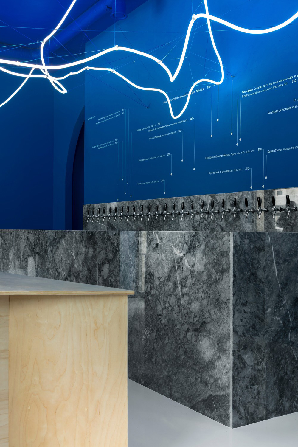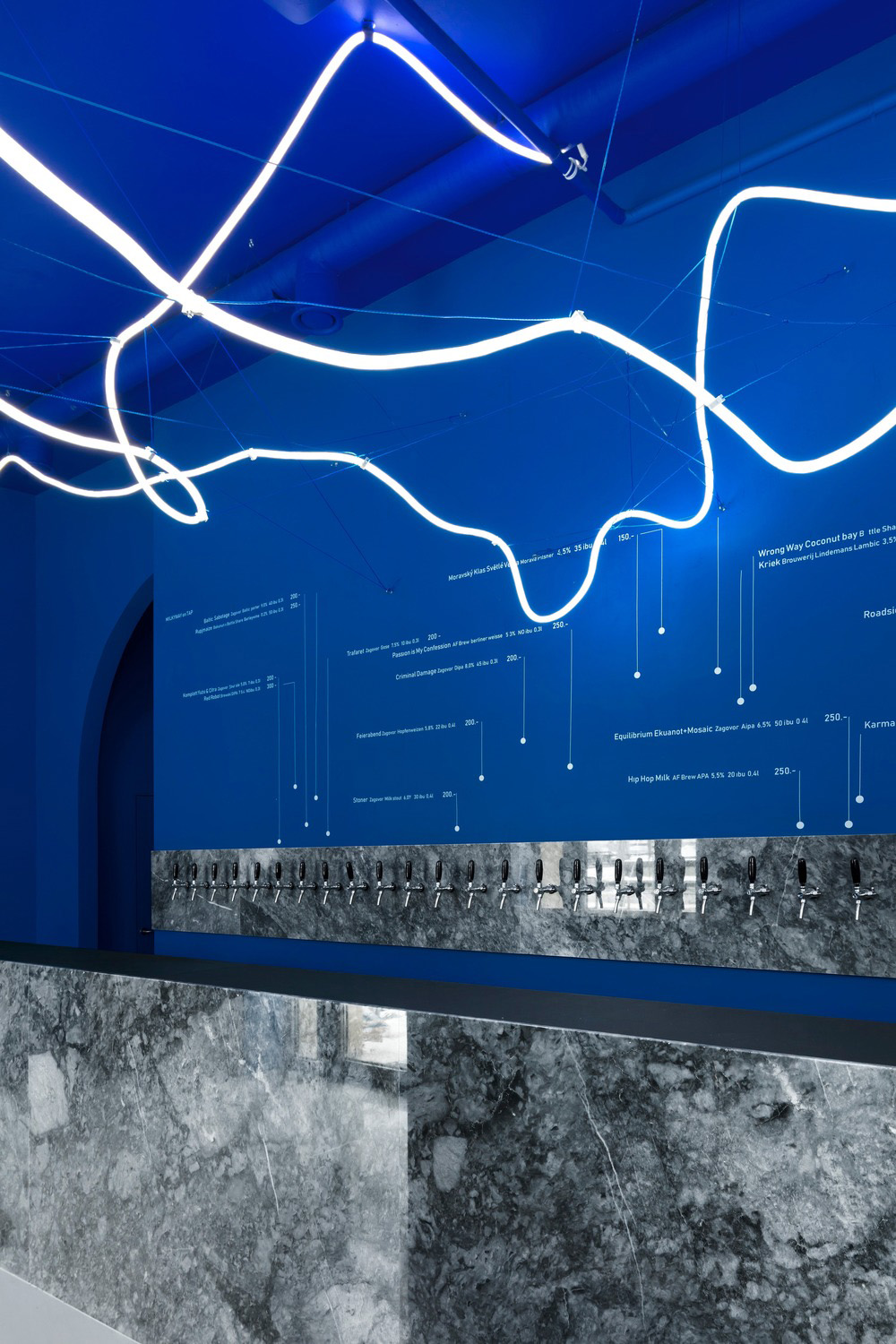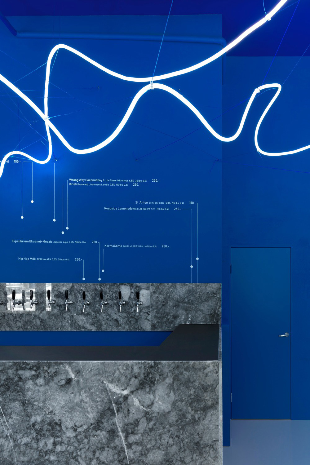 Monoloko design realizza il restyling del Galaxy e Bottle Shop, il locale situato in un edificio neoclassico di Mosca, creando degli interni monocromatici azzurri e forme geometriche che incarnano gli elementi filosofici del "Cosmo Russo"