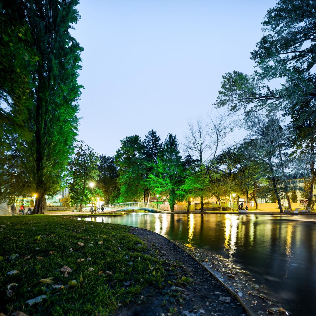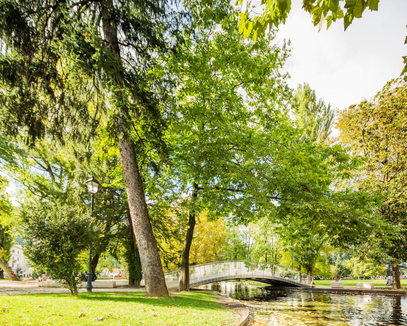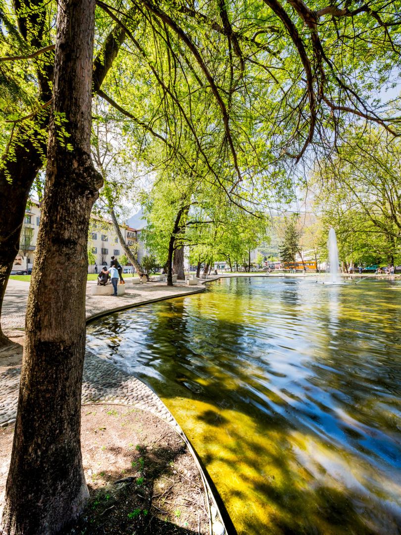 Cuando el canal del Adigetto fue enterrado en 1955, en la superficiese construyó el pequeño lago, con formas dilatadas con respecto al canal y surcado por un pequeño puente peatonal