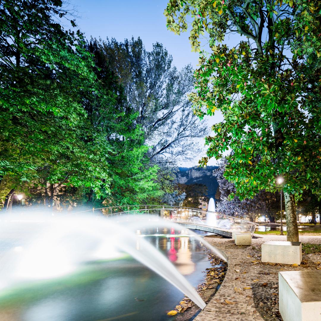 El jardín al sur de Piazza Dante es el área del original "proyecto Tamanini" y todavía lleva la marca del antiguo flujo de agua grabado en su superficie