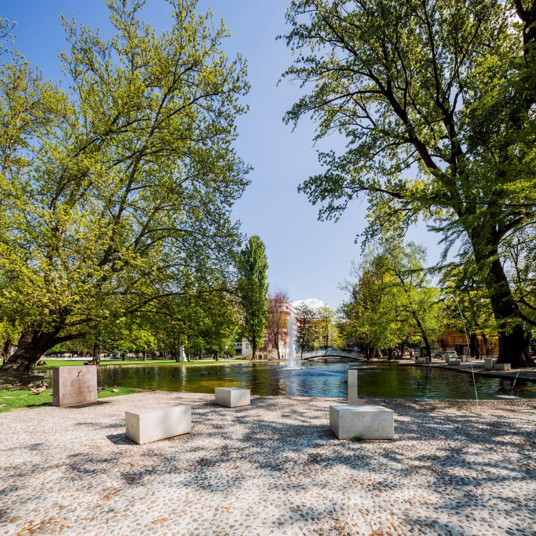 Renovación de la Piazza Dante en Trento. Juegos acuáticos recalifican el jardín urbano