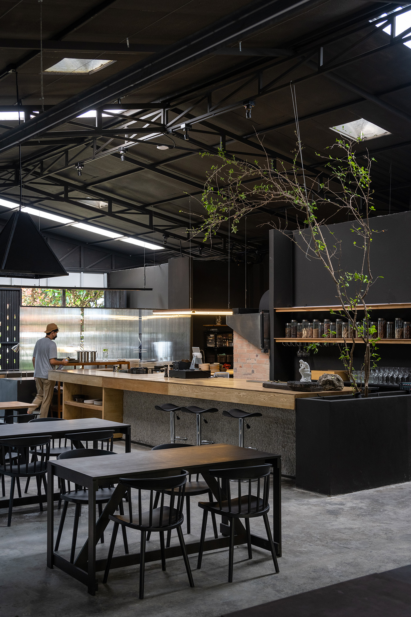 Junto al bar y al restaurante, también hay una oficina y un taller. Estos últimos, junto con un pequeño jardín, están escondidos en un pequeño espacio en la parte trasera. Los materiales utilizados son principalmente industriales, adaptados al ambiente que se ha creado