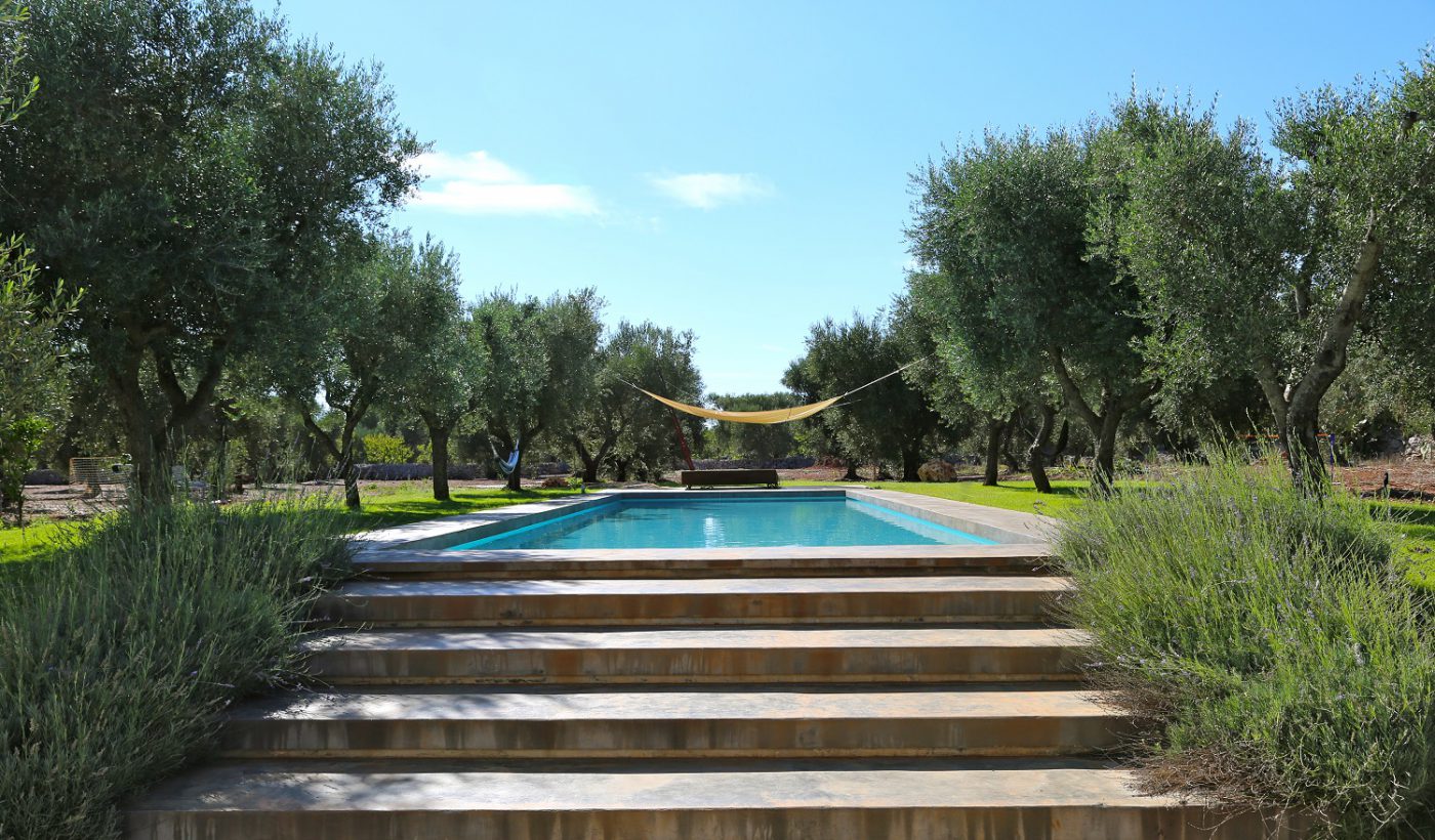 En este proyecto, el amor por el territorio juega un papel principal: es lo que llevó al propietario de la familia romana a elegir el campo de Ostuni para vivir y es lo que impregna la filosofía del proyecto: pensamos en la inmersión total en la naturaleza, alrededor, con la inserción de 13 olivos de un siglo de antigüedad, el uso casi exclusivo de materiales locales típicos y el uso de trabajadores locales