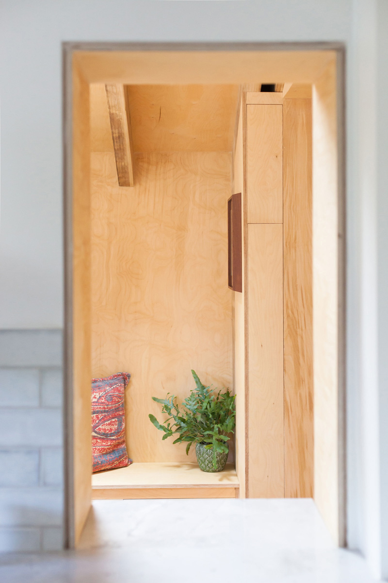 El estudio Nimtim propone una adición de unos pocos metros cuadrados. El nuevo espacio se convierte en el punto focal de los espacios existentes al cambiar la forma en que se utiliza la planta baja. Un nuevo comedor está diseñado con aperturas que mejoran la conexión con la cocina, la parte existente y con el jardín. Las puertas se abren a un patio con una estructura de pérgola abierta. La cocina está rediseñada y junto con un nuevo baño pequeño