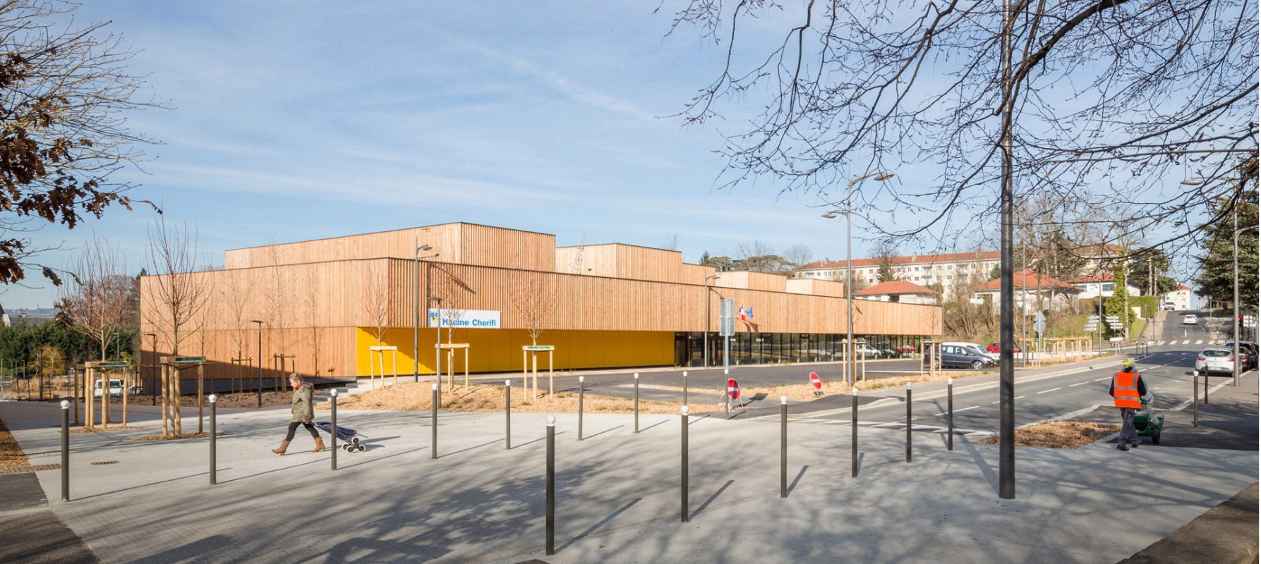 El gimnasio Hacine Cherifi es parte del proyecto para el complejo escolar Paul Chevallier en la ciudad de Rillieux-La-Pape. Junto a las escuelas con sus techos verdes se yergue un imponente y silencioso vecino.