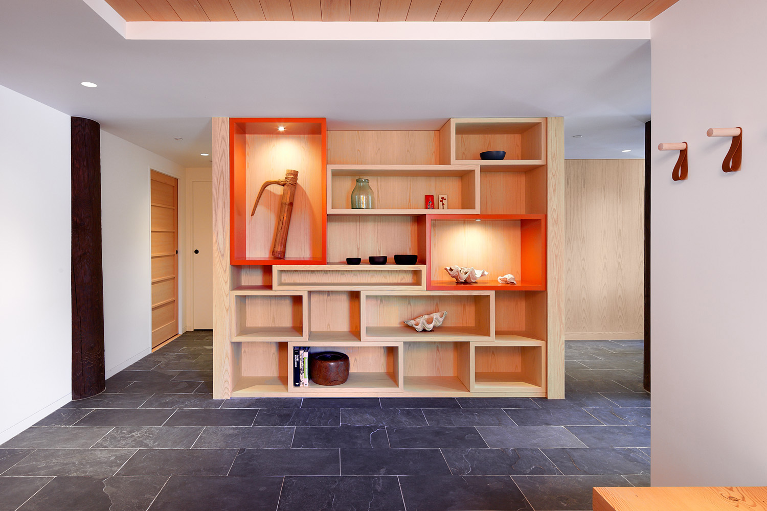 La nueva visión de la casa incluye espacios amplios y abiertos, una entrada revisada, un espacio dedicado a la oficina, un amplio dormitorio principal y una sala Zen. La casa principal se basó en el modelo de la casa tradicional japonesa Haiku construida con un marco de leña de abeto Douglas que soporta una gran teja inclinada típicamente elevada sobre el suelo, techos de abeto cepillado y paneles de roble en el interior
