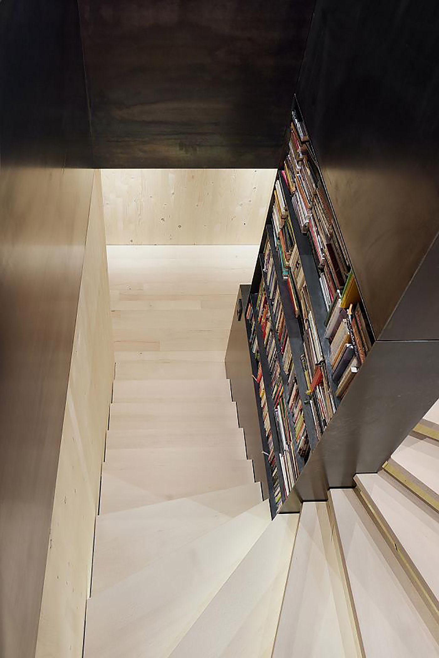 Los pisos superiores de madera maciza descansan sobre tres columnas de madera, lo que permite crear una planta baja con vistas panorámicas al exterior desde la cocina, el comedor y el salón. En contraste con la apertura de la planta baja, las plantas superiores cuentan con ventanas estratégicamente situadas hacia puntos estratégicos del exterior. La estructura de hormigón armado del patio y el garaje funcionan como conexión con el edificio existente. El tejado de forma orgánica conecta la nueva casa-torre con la antigua casa y el jardín
