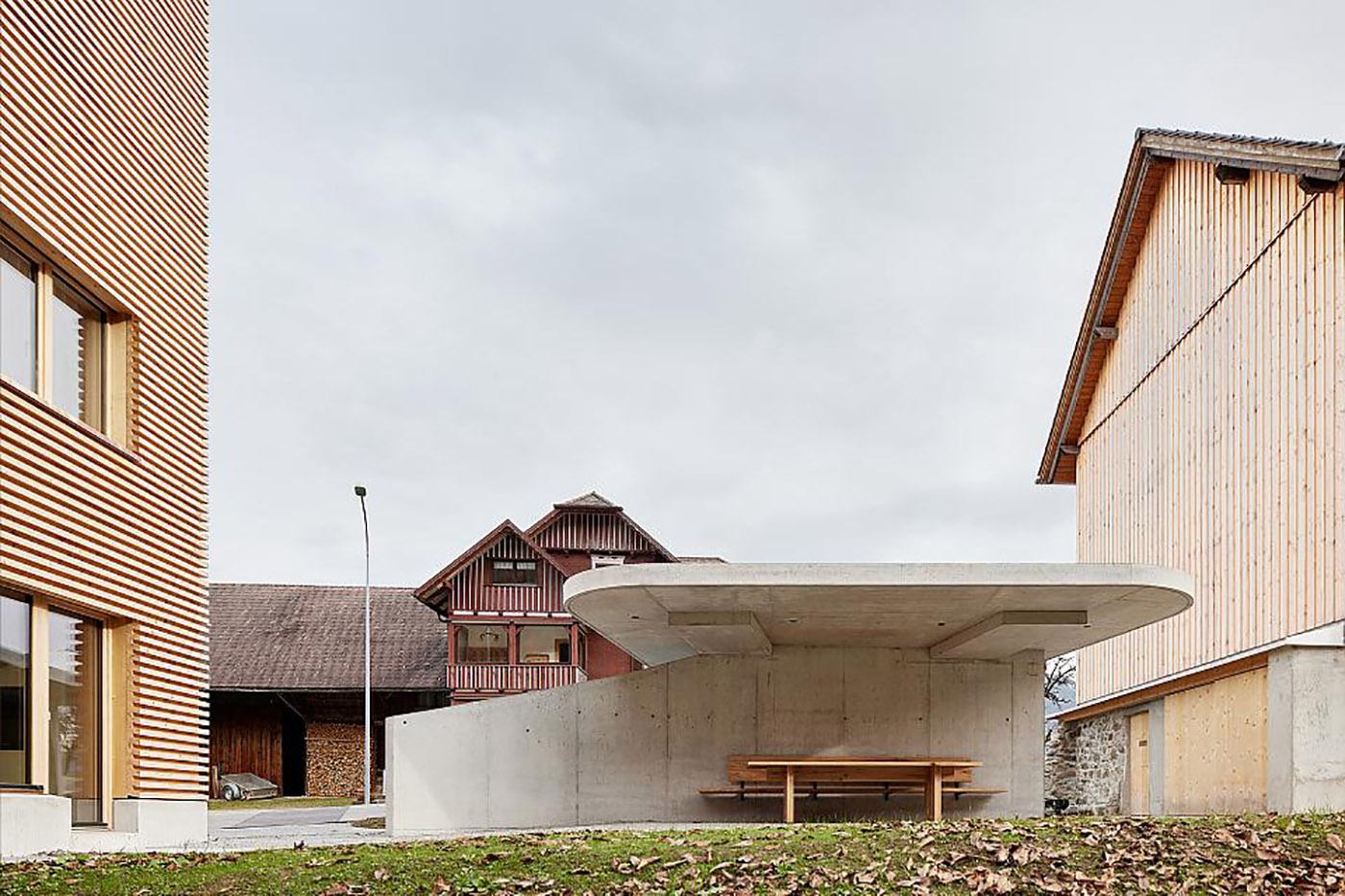 A diferencia de las casas de campo ornamentadas, el nuevo edificio está diseñado con dimensiones reducidas y una forma más sencilla y regular. La Firm Arkitecten asegura que es una alternativa contemporánea a las casas de campo del pasado. La huella cuadrada del edificio acentúa su sencillez. La combinación del cubo de madera de las plantas superiores con la base maciza de hormigón forma la torre