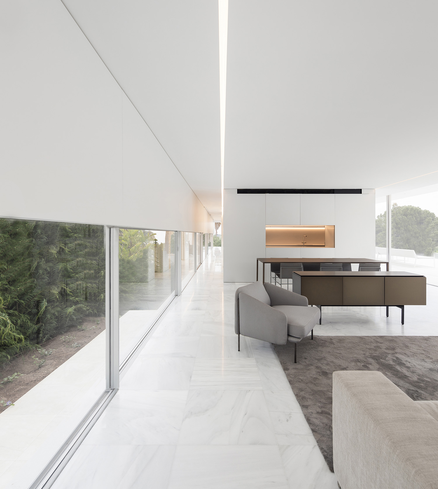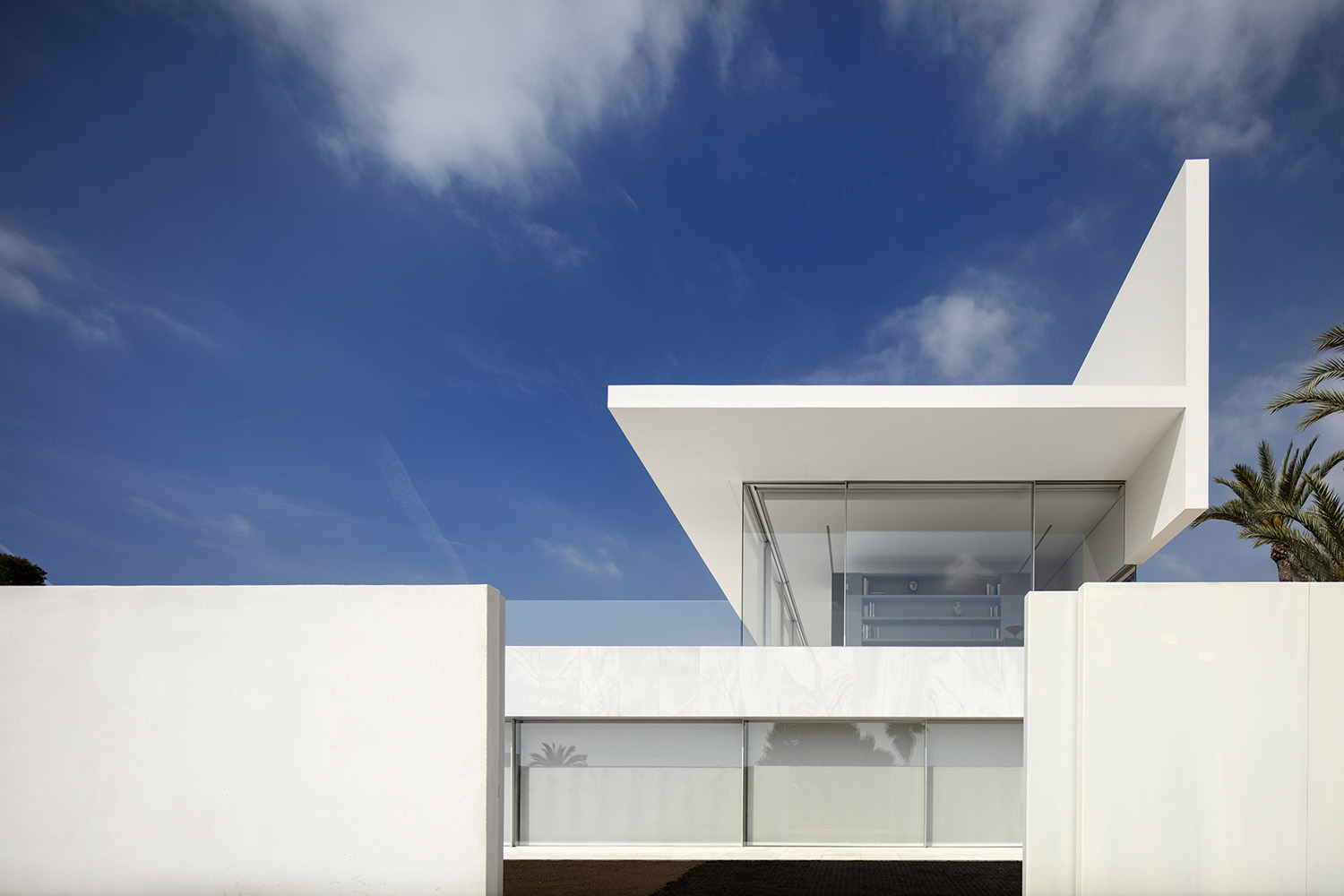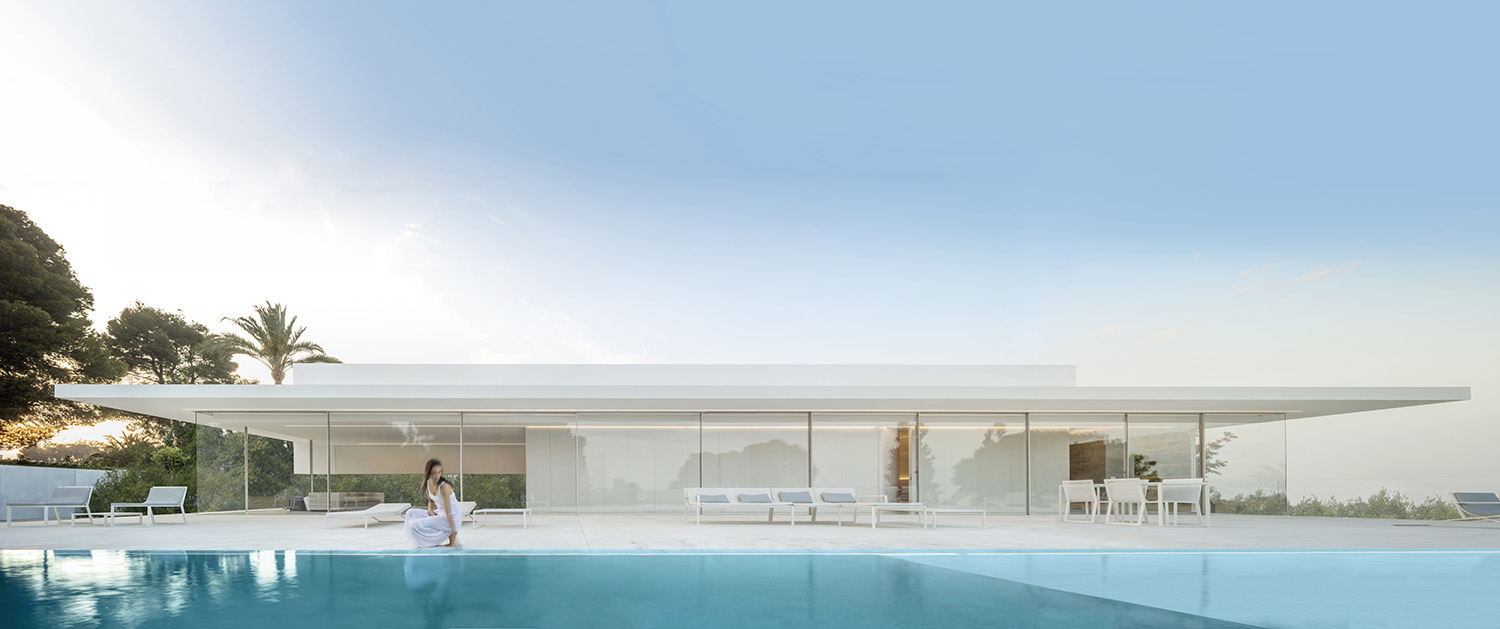 El estudio Fran Silvestre Arquitectos diseñó la Casa Hoffman de acuerdo con los principios de arquitectura integrada en el paisaje, fusionándola perfectamente con su entorno. El terreno está rodeado de jardines y se encuentra incrustado en la parcela alta y alargada de la villa con una vista lejana al mar. Tres elementos conforman el proyecto. Un techo extruido en la dirección longitudinal del suelo con forma de "T", que constituye la estructura bajo la cual se encuentra el espacio habitable. Esta geometría permite disfrutar del mar mientras te protege de miradas curiosas
