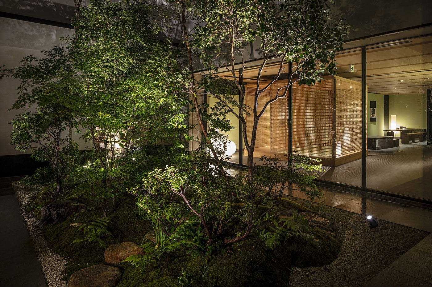 El diseño arquitectónico se hace eco del tema clásico de las Machiya al tiempo que integra toques modernos: paredes de estuco blanco de estilo japonés con ventanas de marco negro, todo ello bien integrado con las antiguas casas de Kioto. “Chozu”, la tradicional pila de agua para purificarse las manos, fue diseñada por cada artista y colocada simbólicamente en la entrada de cada uno de los cinco edificios del hotel e interactúa con el diseño interior