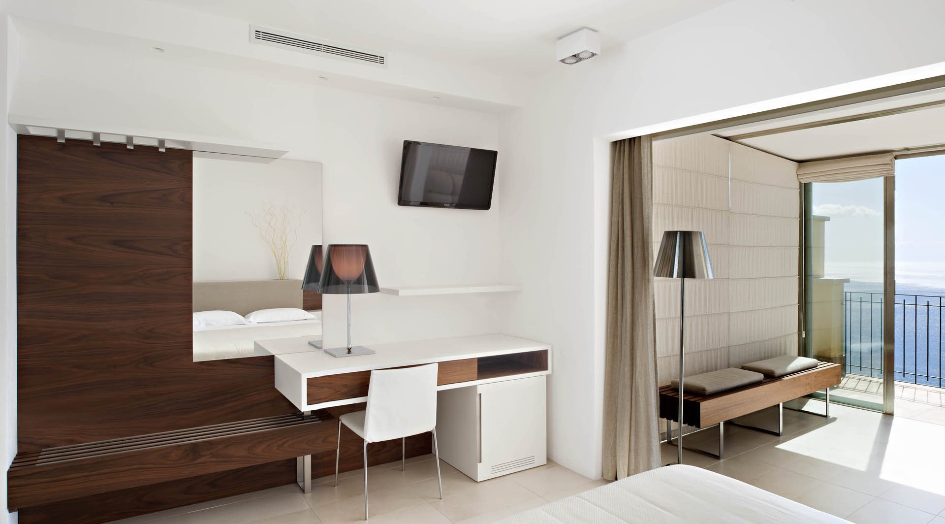Las habitaciones están diseñadas para permitir el relax y la tranquilidad, y constituyen en un único espacio grande, luminoso y aireado que aloja las funciones principales