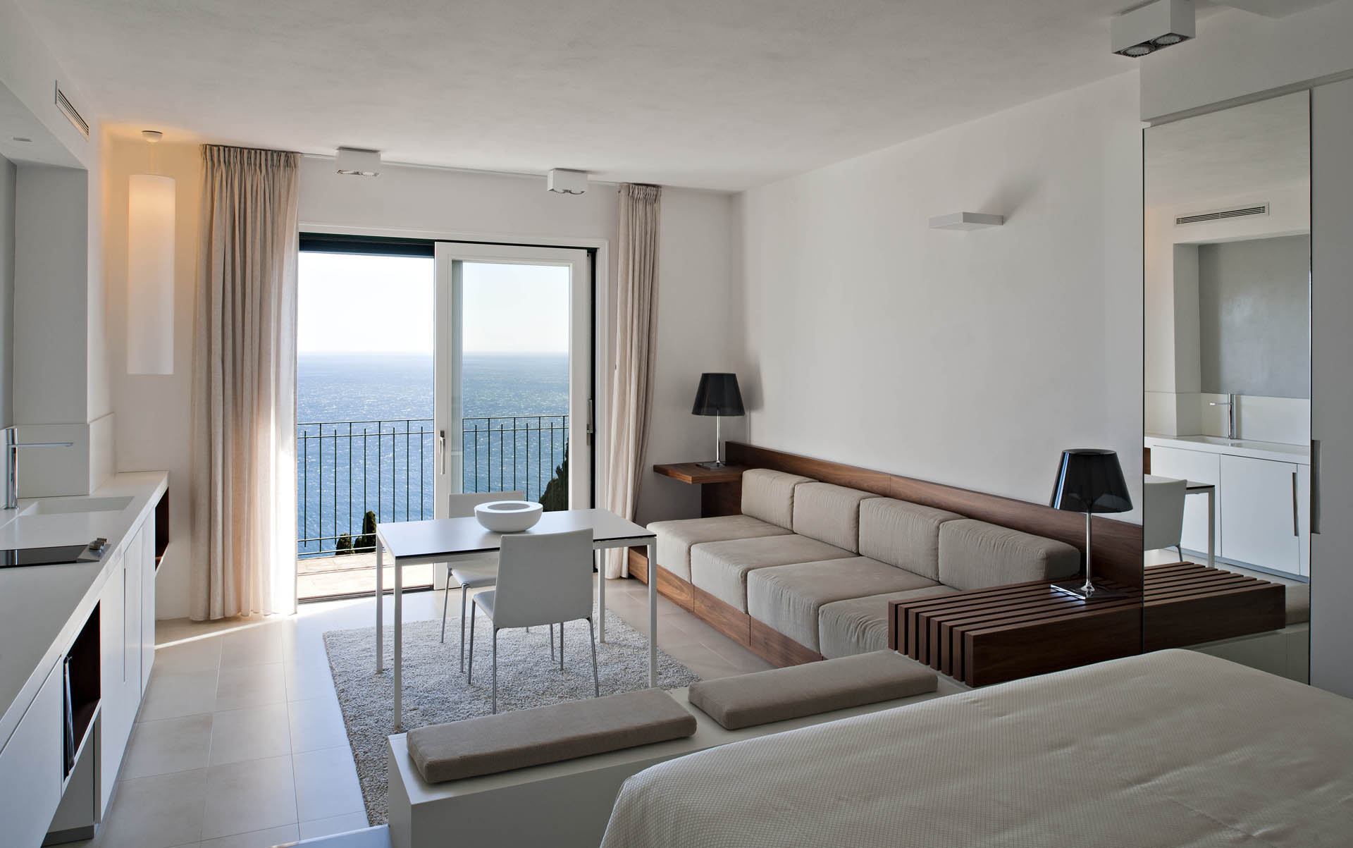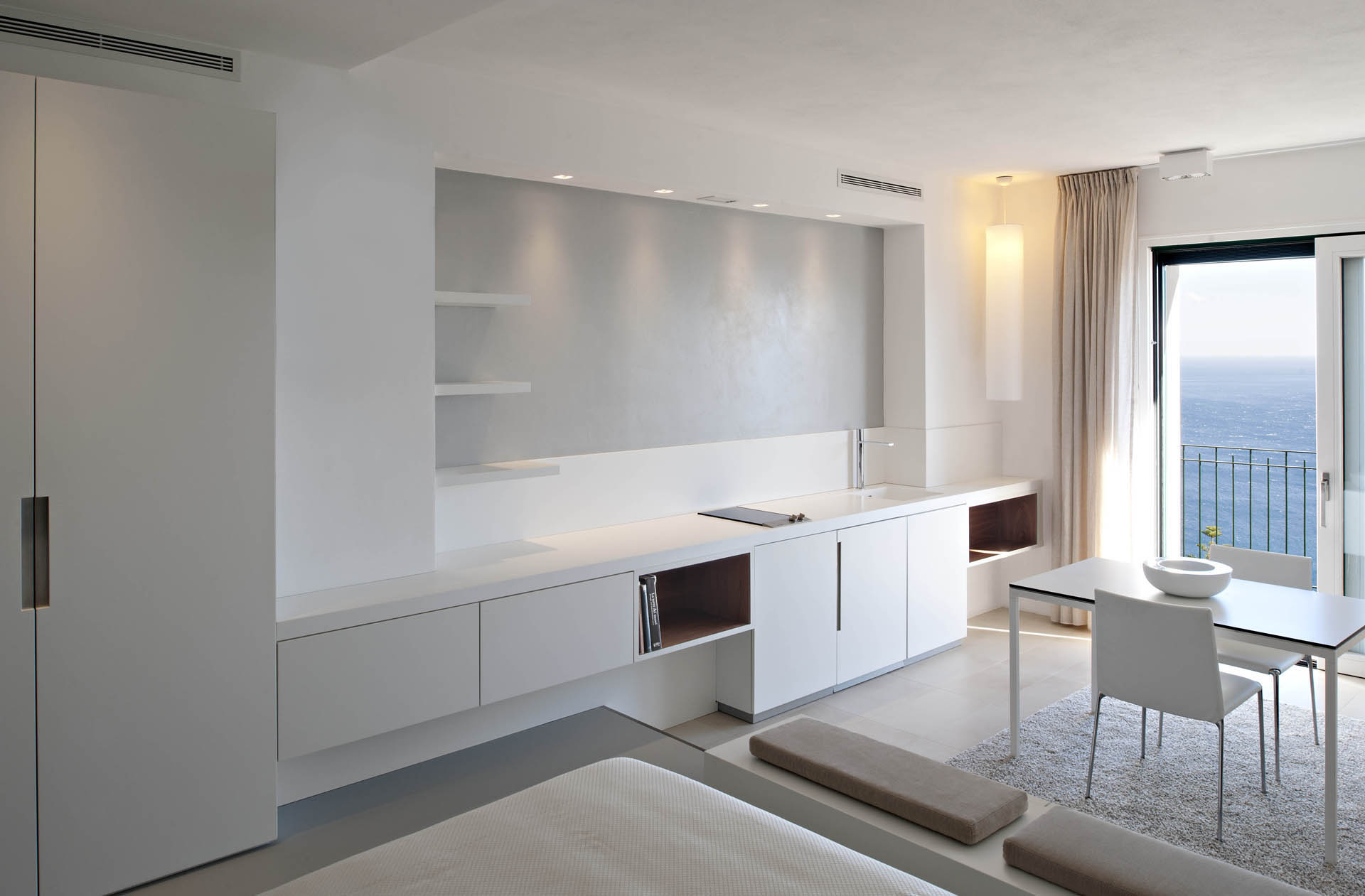 Imaginaron espacios abiertos claros, luminosos y soleados, donde el aire y la luz del Mediterráneo participaban en la atmósfera interna de las habitaciones, donde el mobiliario no era un obstáculo, ni un impedimento para el mar