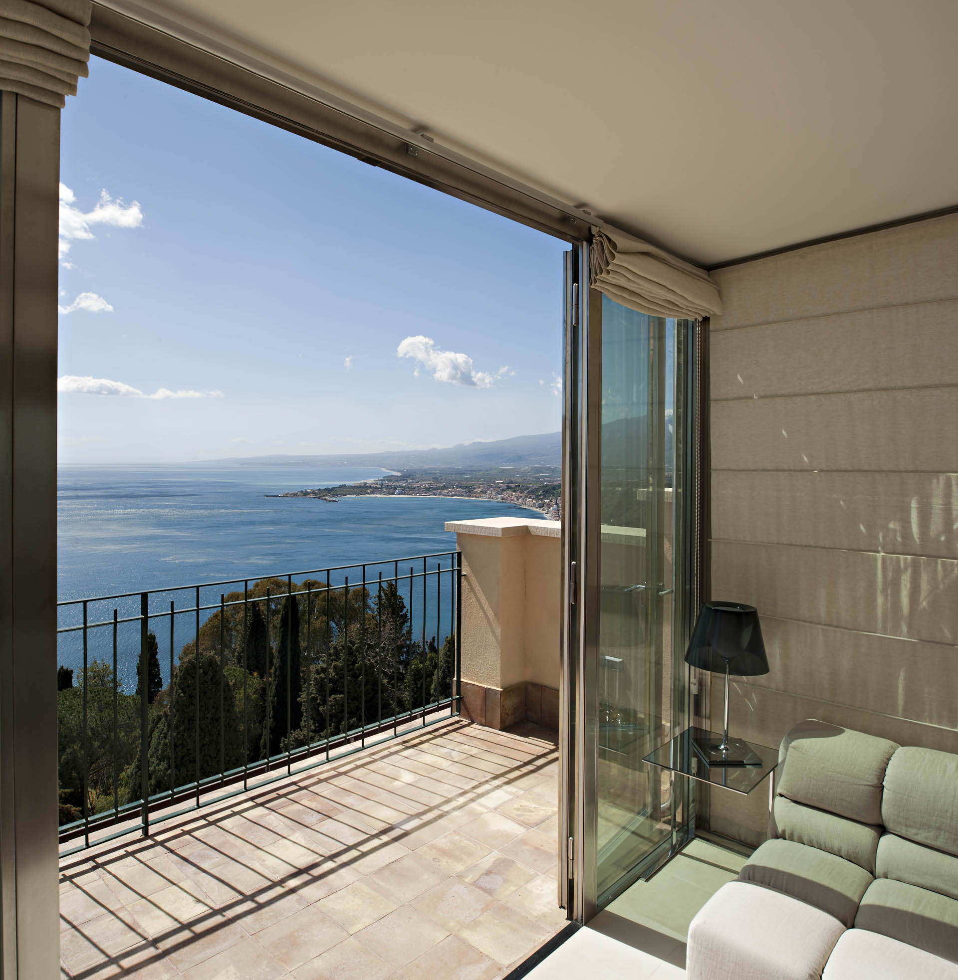 En la refuncionalización de PalazzinaPecaut en Taormina y en el diseño de su interior se ha tenido siempre en cuenta la contextualización de la propiedad, la importancia del lugar, el extraordinario panorama y el fuerte sabor mediterráneo que entra por las ventanas