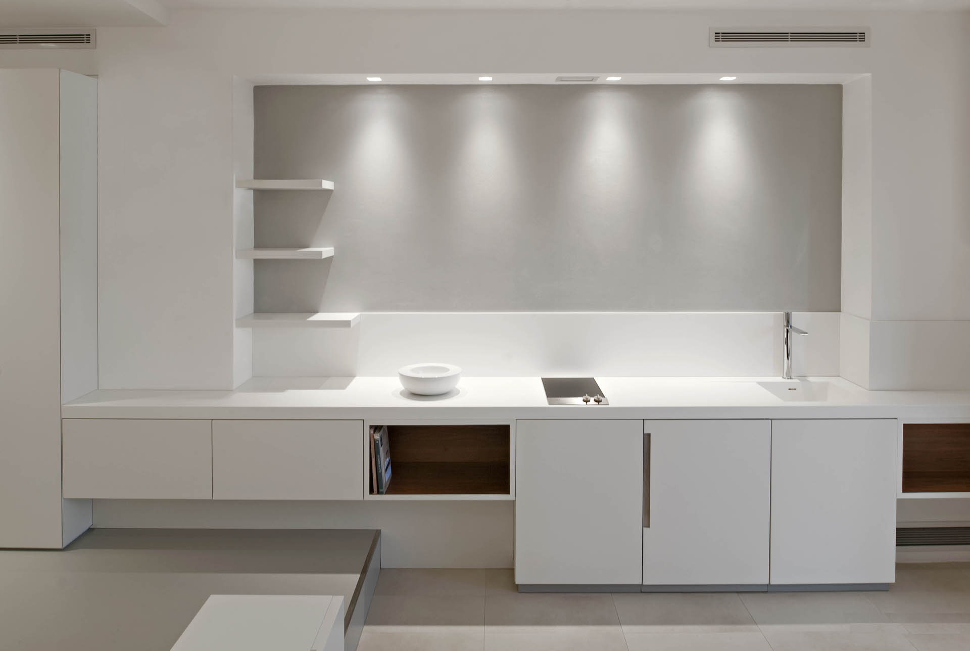 Los apartamentos han sido especialmente diseñados y construidos en cada parte. Se optópor utilizar líneas esenciales y contemporáneas, materiales nobles pero no decorados. Las proporciones, dadas por la alternancia de vacíos y sólidos, por la intersección de líneas y superficies, dan un aspecto sobrio y elegante al entorno, que encuentra su agrado en la eliminación de bultos innecesarios y en la atención a los detalles
