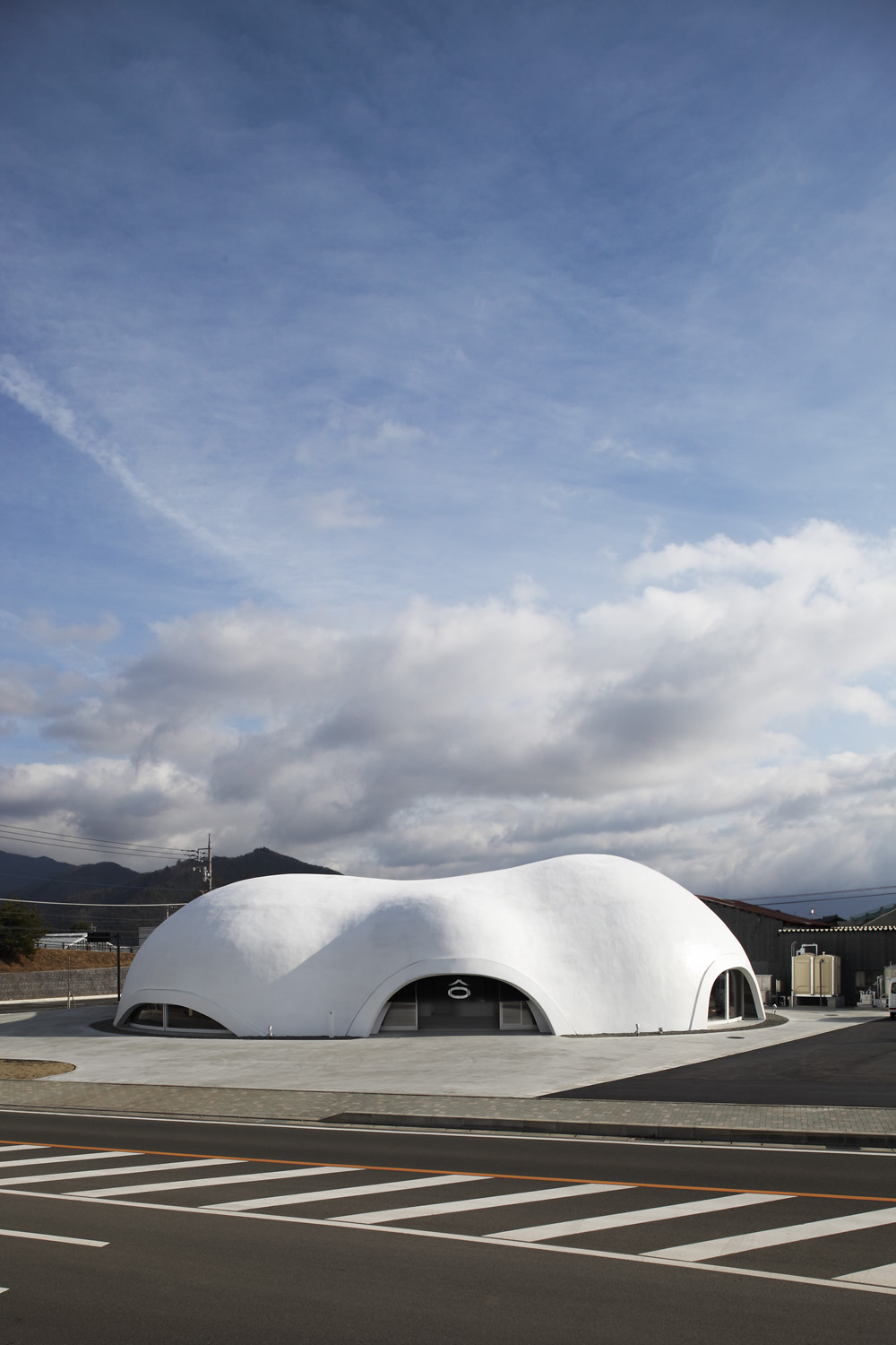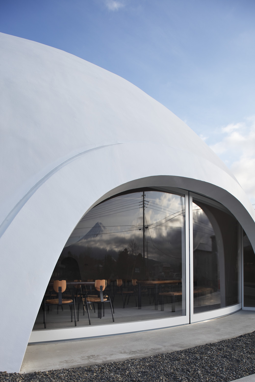 Una struttura di Design ideata dall'Architetto giapponese Takeshi Hosaka ospita un ristorante a Yamanashi, in Giappone. Una bianca copertura dalle forme arrotondate