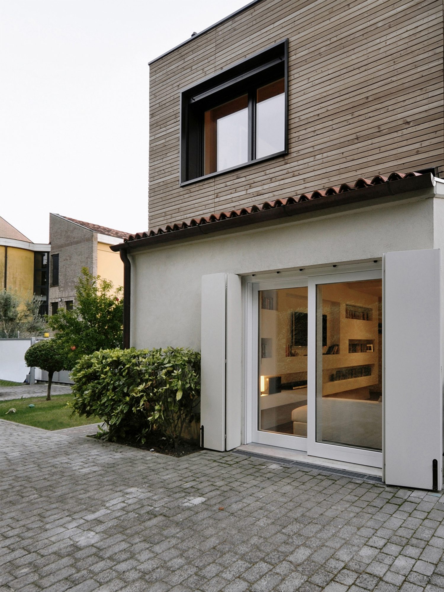 La clave para interpretar el proyecto de los arquitectos Paolo Didoné y Devvy Comacchio con el fin de satisfacer las necesidades del cliente, de Dolo, en provincia de Venecia, fue crear una pequeña extensión que se declare en forma y en materia capaz de dialogar, por la explícita diferencia constructiva, con el edificio existente