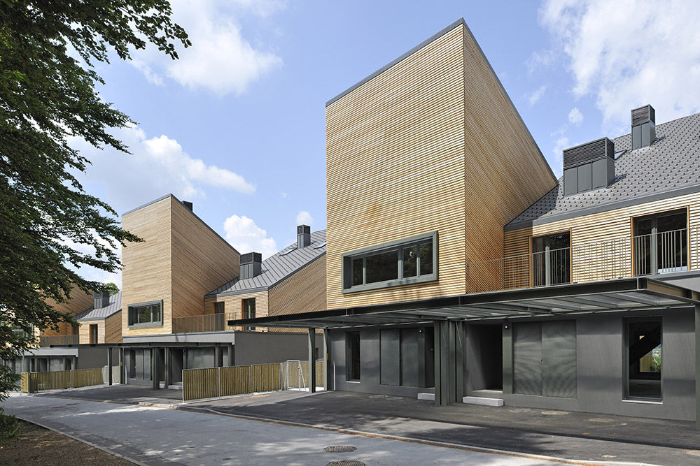 Debido a la densidad de la vivienda, las terrazas jardín conectadas a las salas de estar están diseñadas de tal manera que no pueden molestarse entre sí. Los planos son extremadamente flexibles: los muros de carga están en el perímetro, dejando libre la personalización de las habitaciones interiores, tanto en la planta baja como en el segundo piso