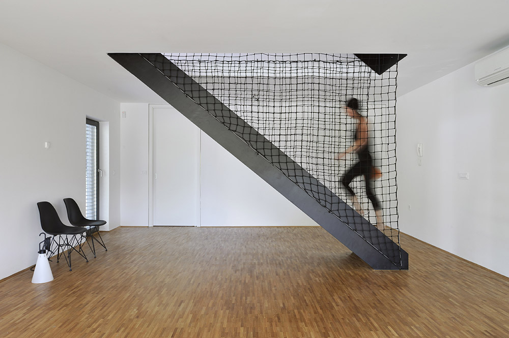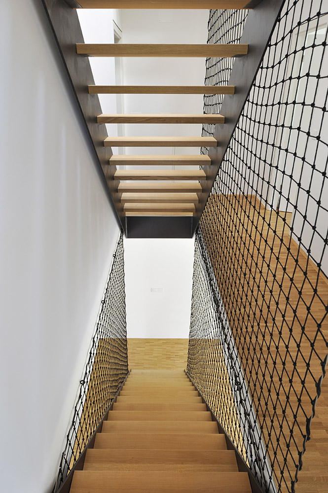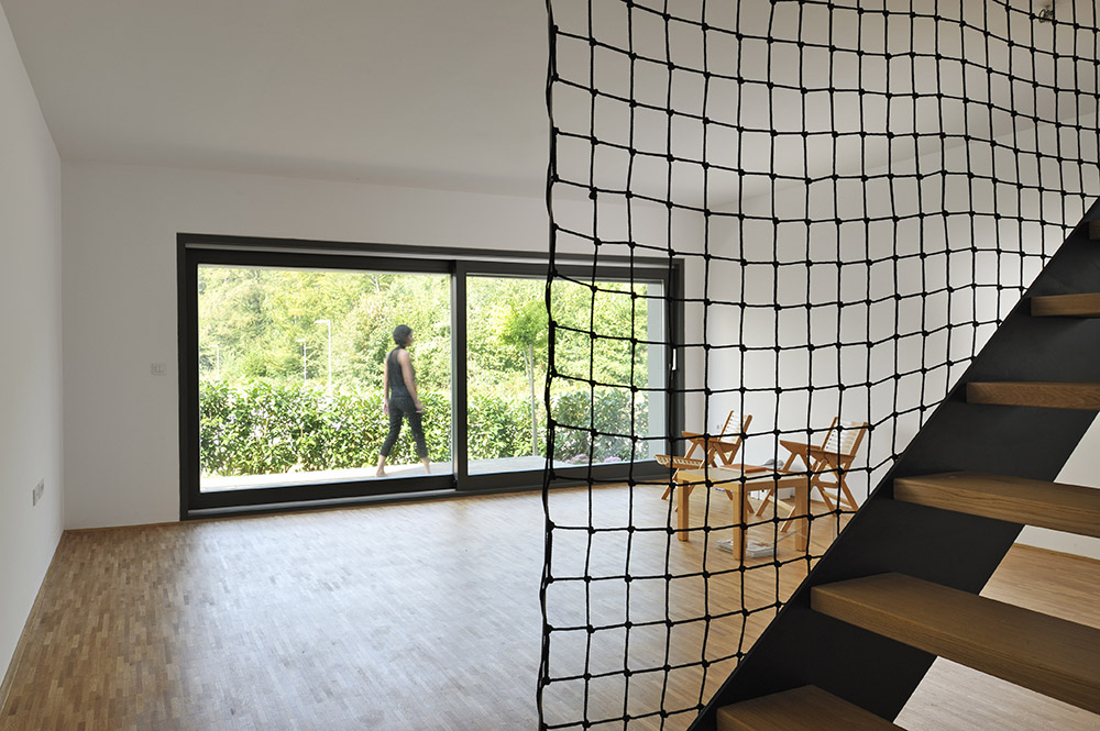 El único elemento fijo en el interior es la escalera, de acero, que además de actuar como conexión, parece una estructura. La disposición del plano es bastante clásica, con las actividades principales en la planta baja y el área de dormir en la planta superior. El espacio del ático puede ser utilizado según sus necesidades, y puede ser usado para actividades versátiles