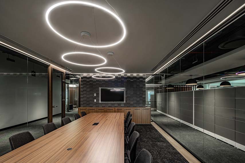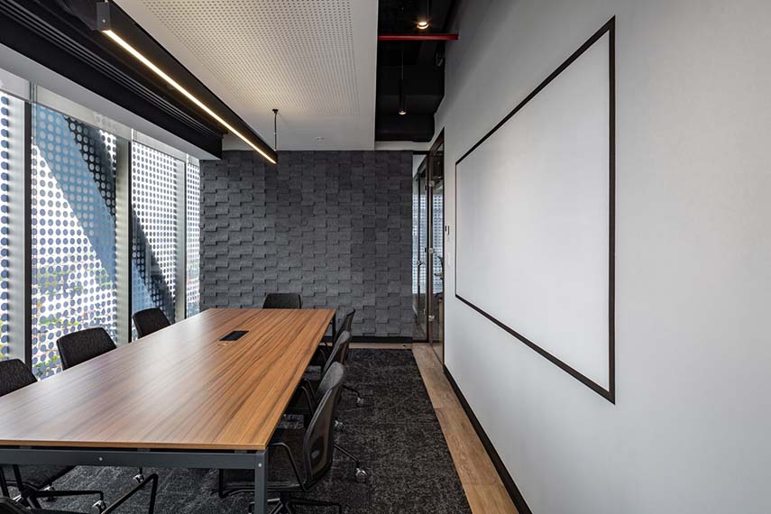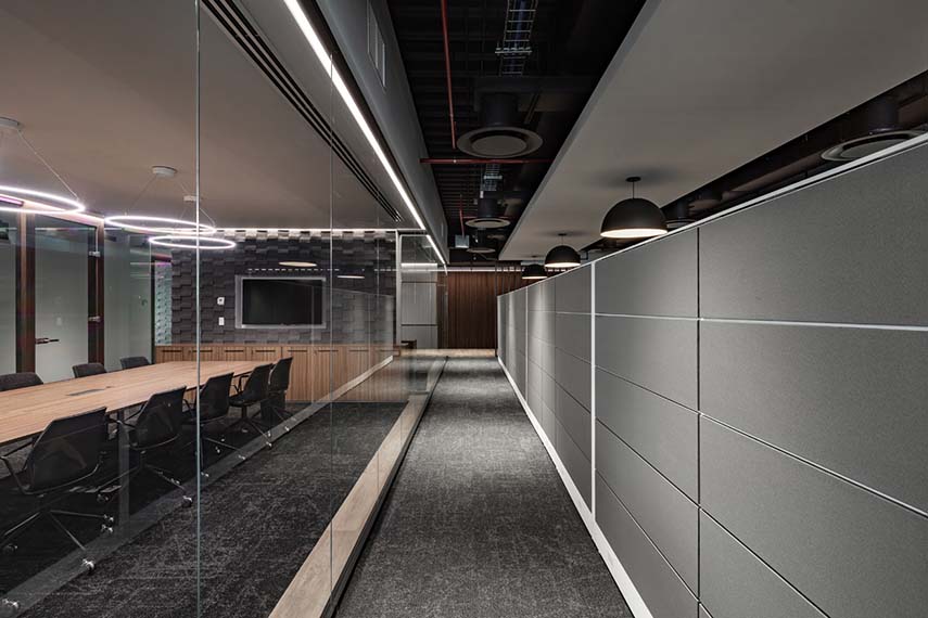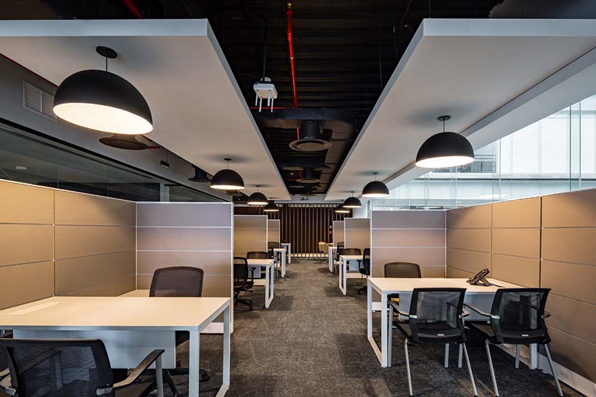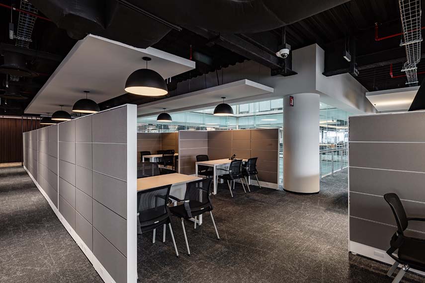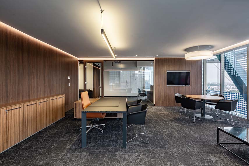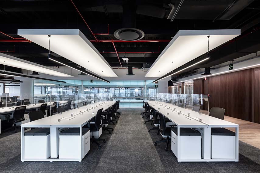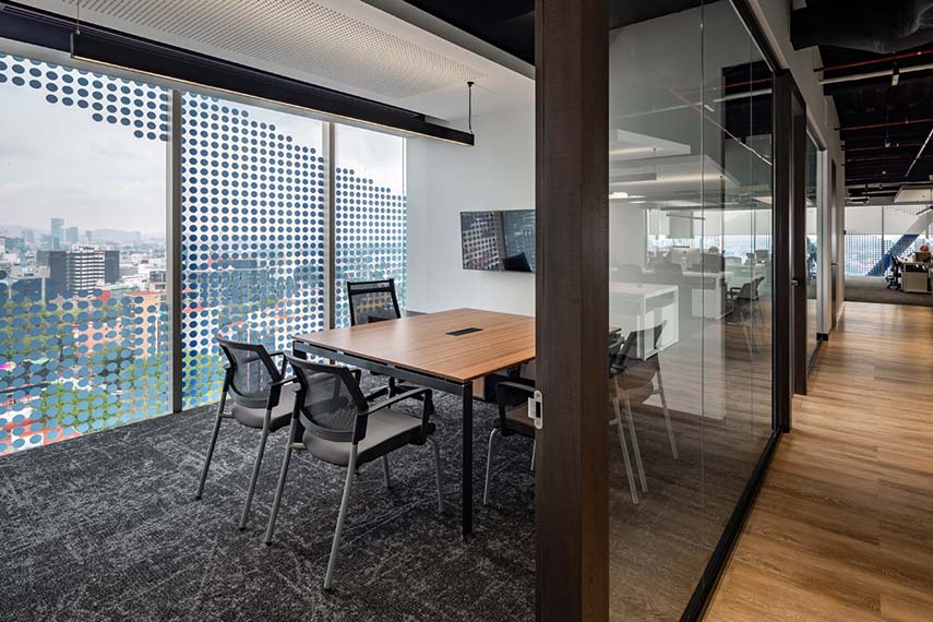 Entre los múltiples proyectos de diseño de interiores del estudio mexicano Work+, el de las oficinas BanCoppel se basa en la innovación y la transparencia, además de fomentar la comunicación entre los líderes de la empresa y los equipos de trabajo. En términos de diseño, esto se traduce en colocar los despachos privados contra las paredes perimetrales, separados del área central de espacio abierto con paredes transparentes que permiten el paso libre de la luz y la mirada