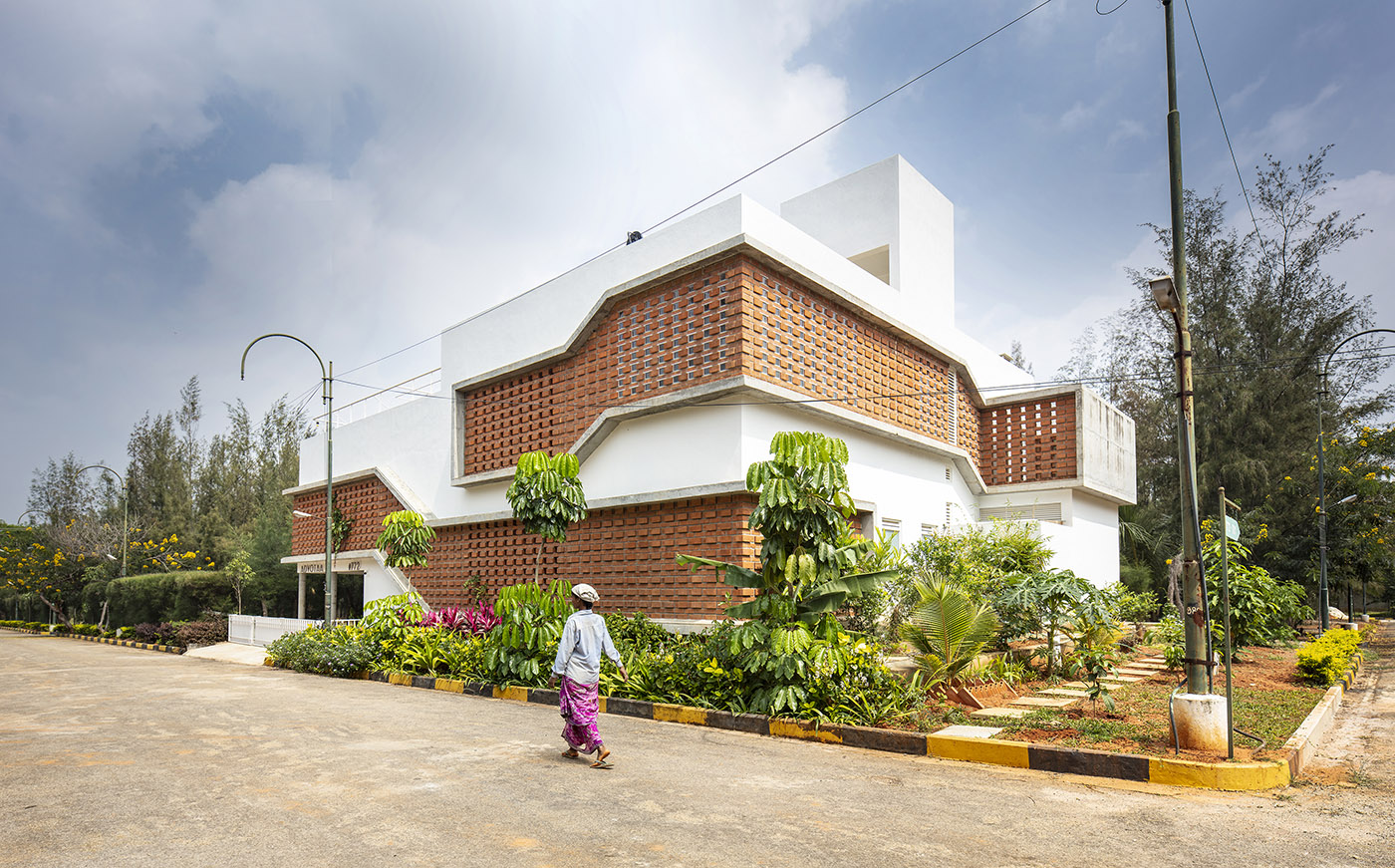 En las afueras de Bangalore, una joven pareja decide construir Inside Out House, confiando en la maestría de Gaurav Roy Choudhury Architects. Entre romanticismo y brutalismo, los muros exteriores de la casa se extienden para encerrar un mundo en su interior. El gran volumen blanco está salpicado de bandas de ladrillos y cemento en bruto, que serpentean alrededor de este monolito