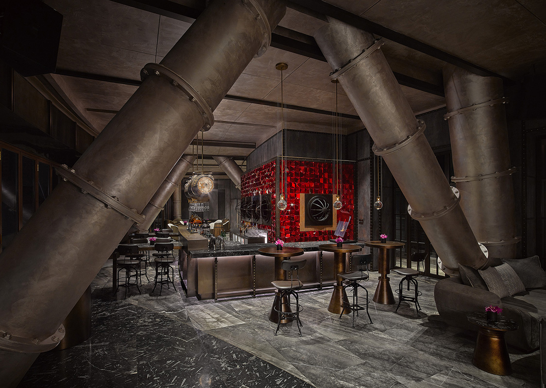 En vista de la posición geográfica, la topografía y la singularidad del concepto, el proyecto se concibió siguiendo el tema de "Viaje al centro de la Tierra". Empezando por la entrada a los pisos subterráneos, incluyendo habitaciones, restaurantes temáticos y bares, todos los diseños interiores están conceptualizados por una historia de aventuras. CCD ha creado un espacio de hospitalidad lleno de historias, dándole al hotel un posicionamiento exóticocomo marca