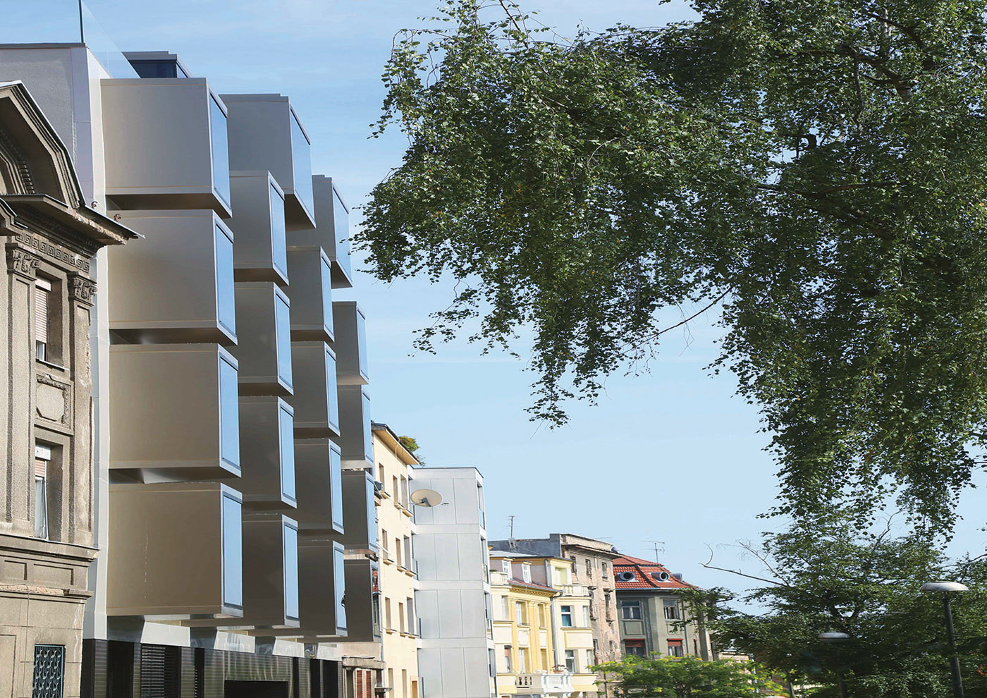 Tridimensionalidad y juego de volúmenes en la fachada. Edificio residencial Interpolation B